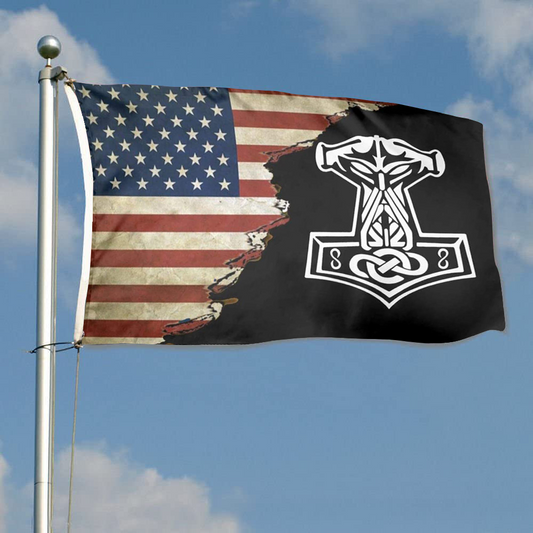 Fyon We Trust Thor Vikings Hammer Mjolnir Norse Celtic Flag Indoor and outdoor banner 2241117