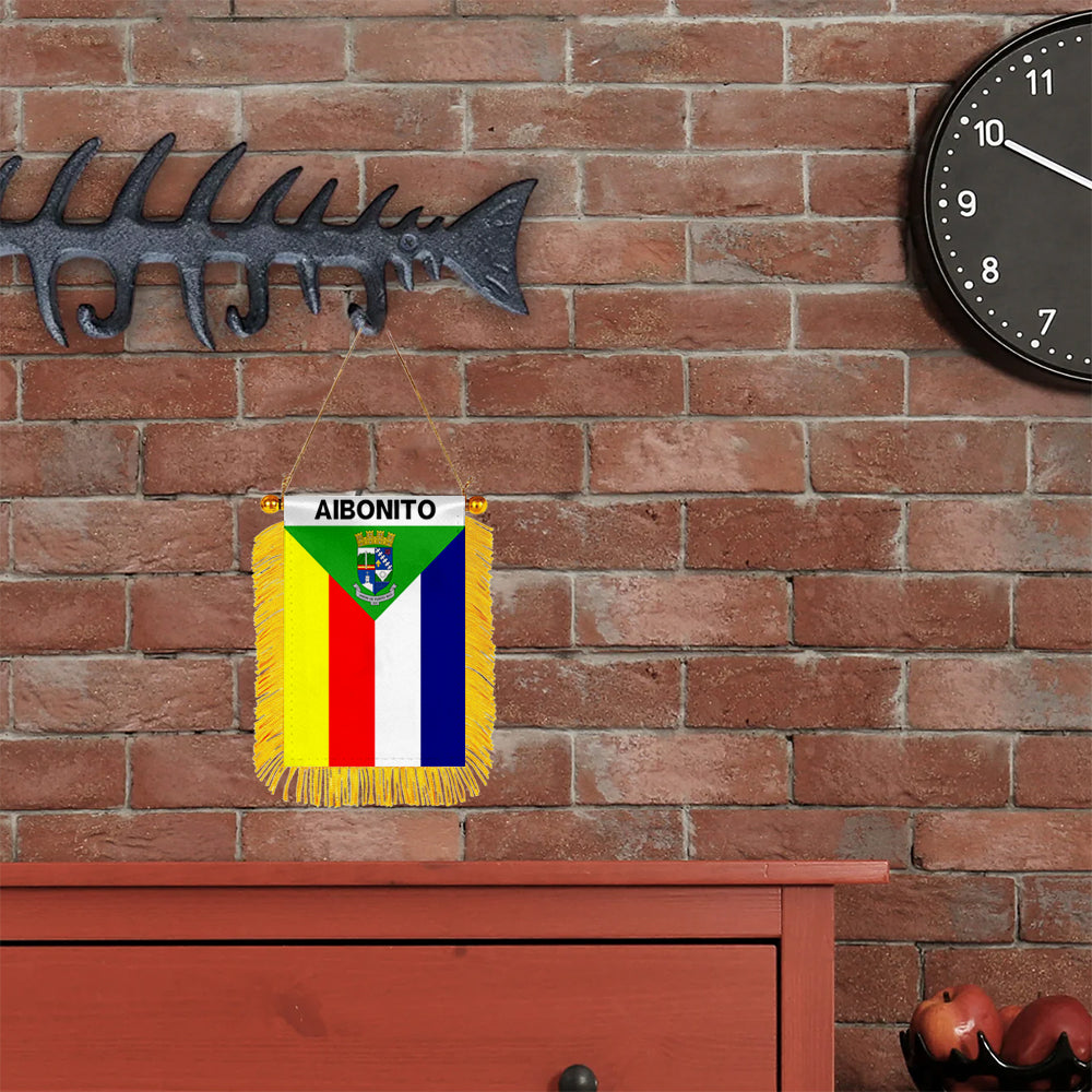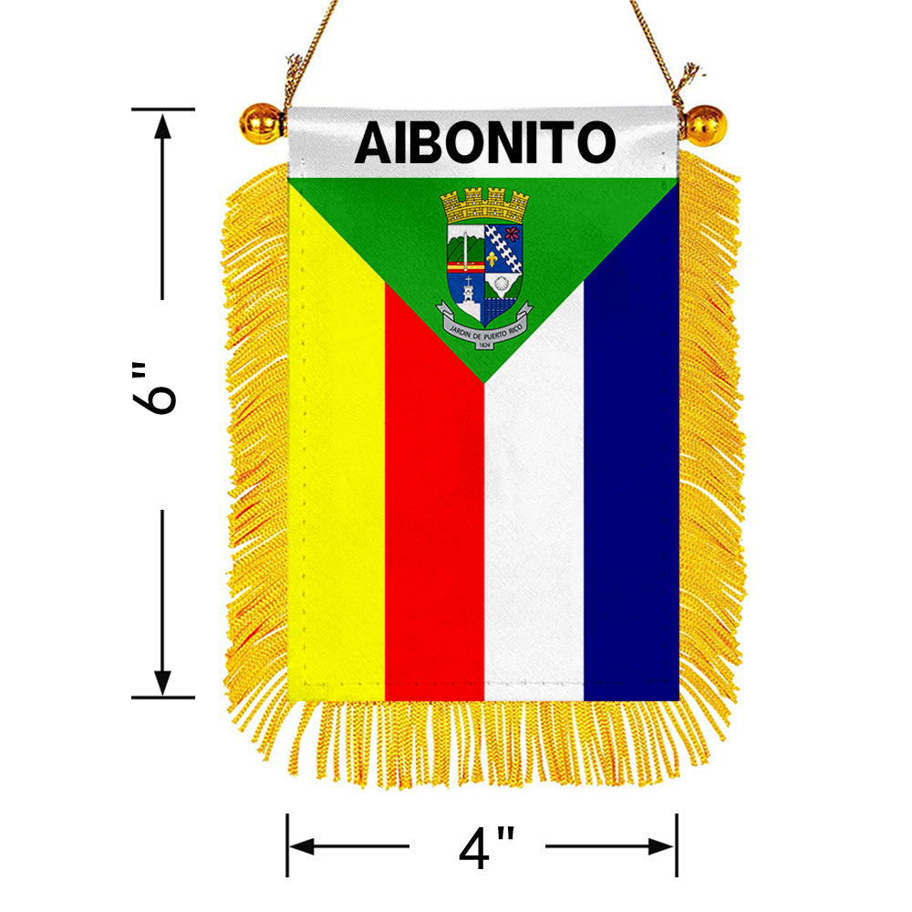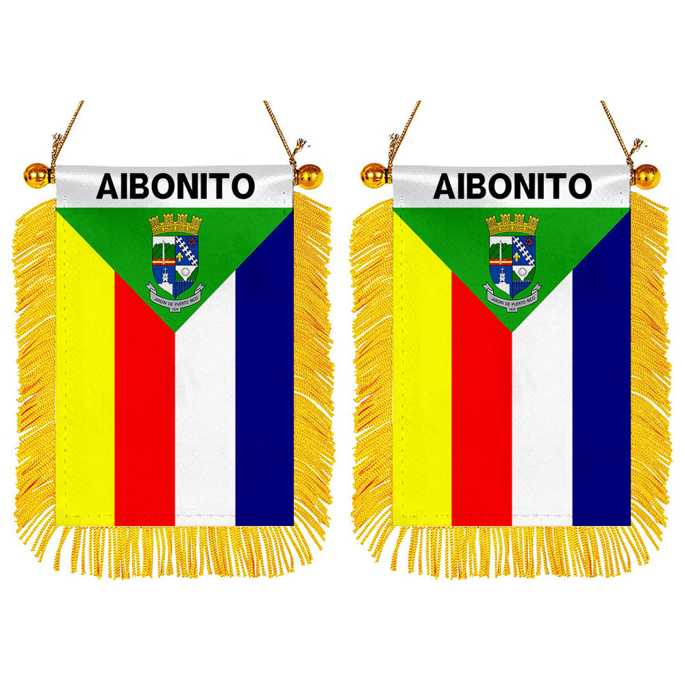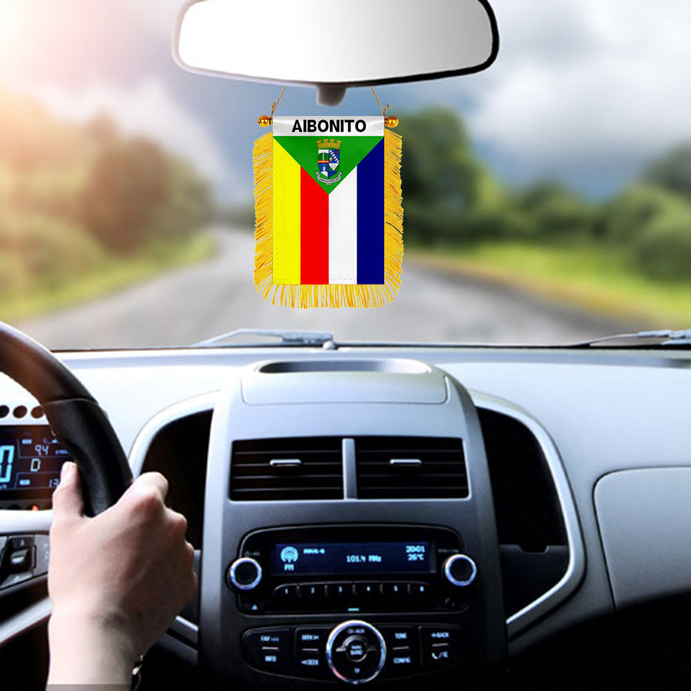 Aibonito, Puerto Rico Flag Mini Car Rearview Mirror Flag Banner - 2PC