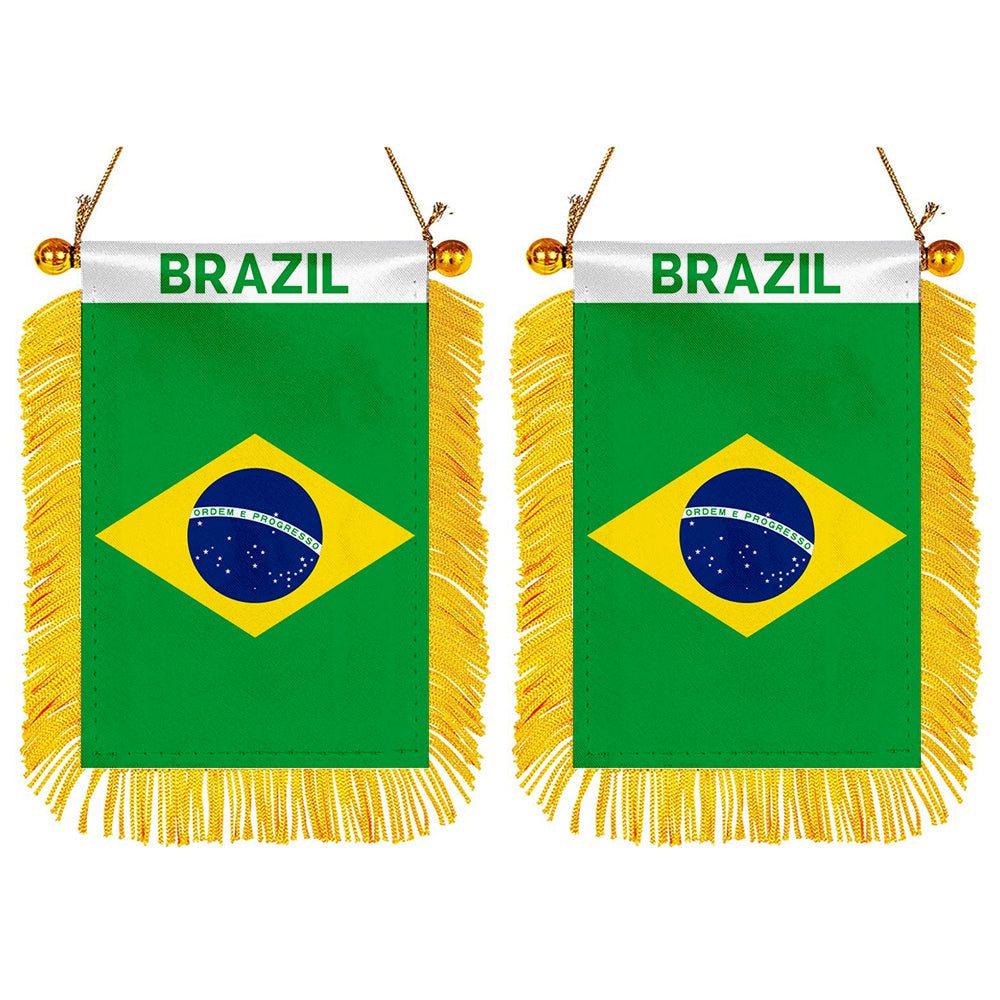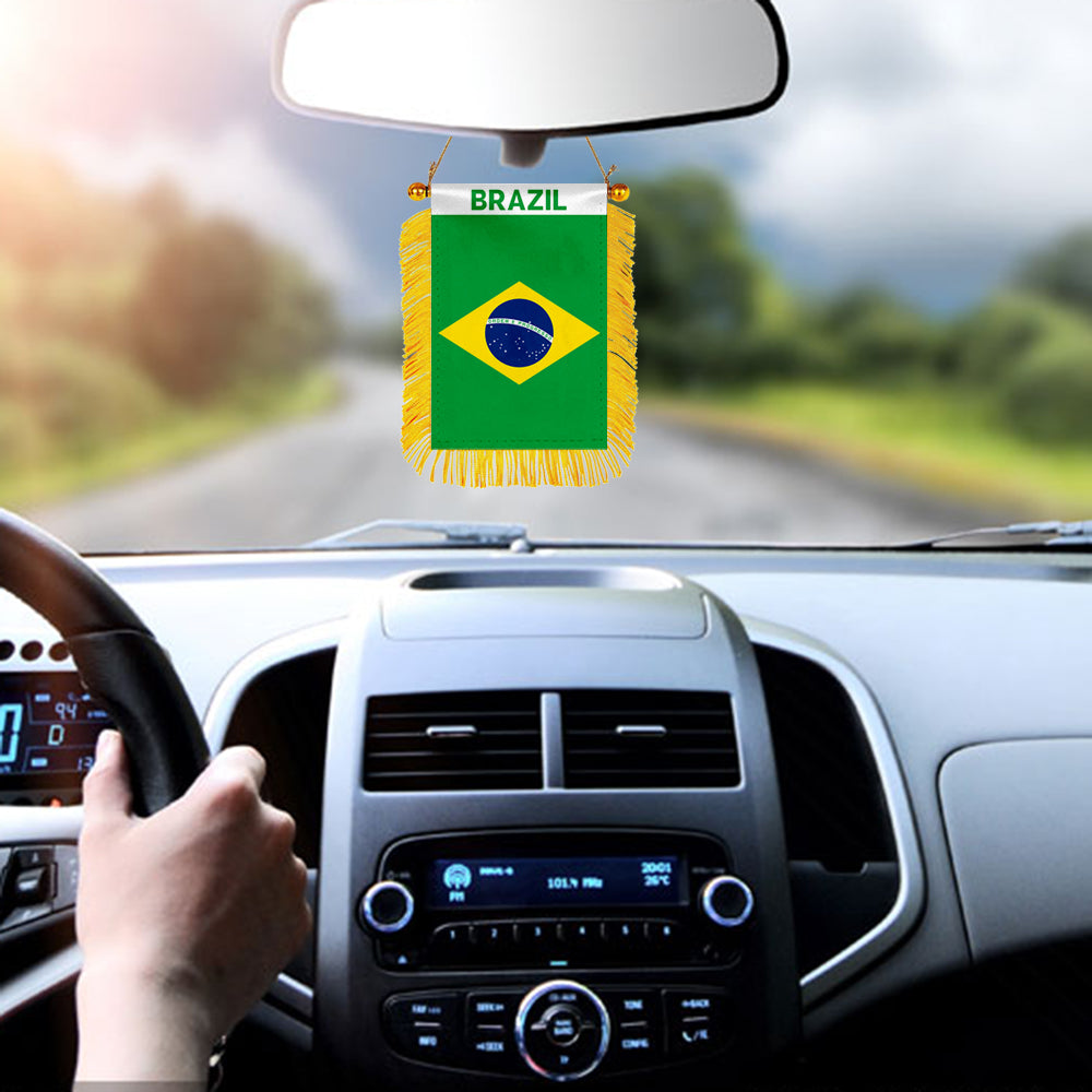 Brazil Mini Car Rearview Mirror Flag Banner - 2PC