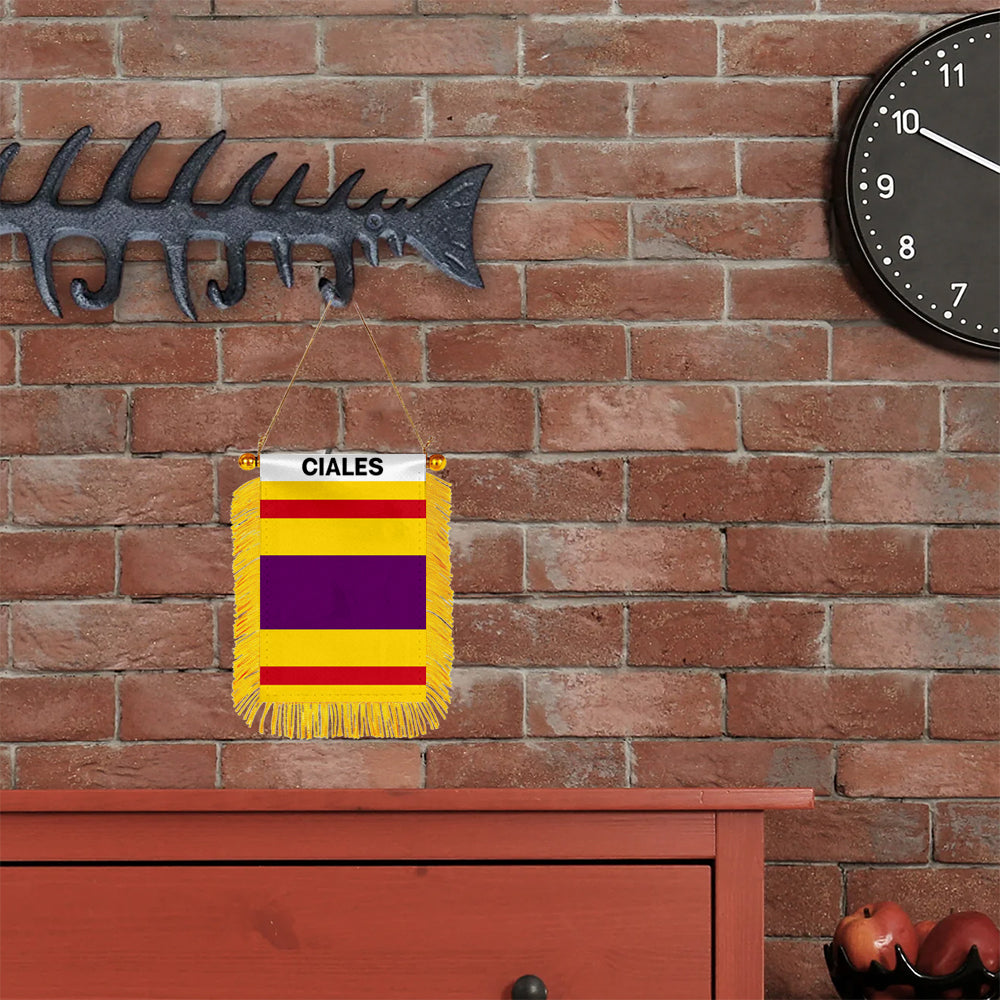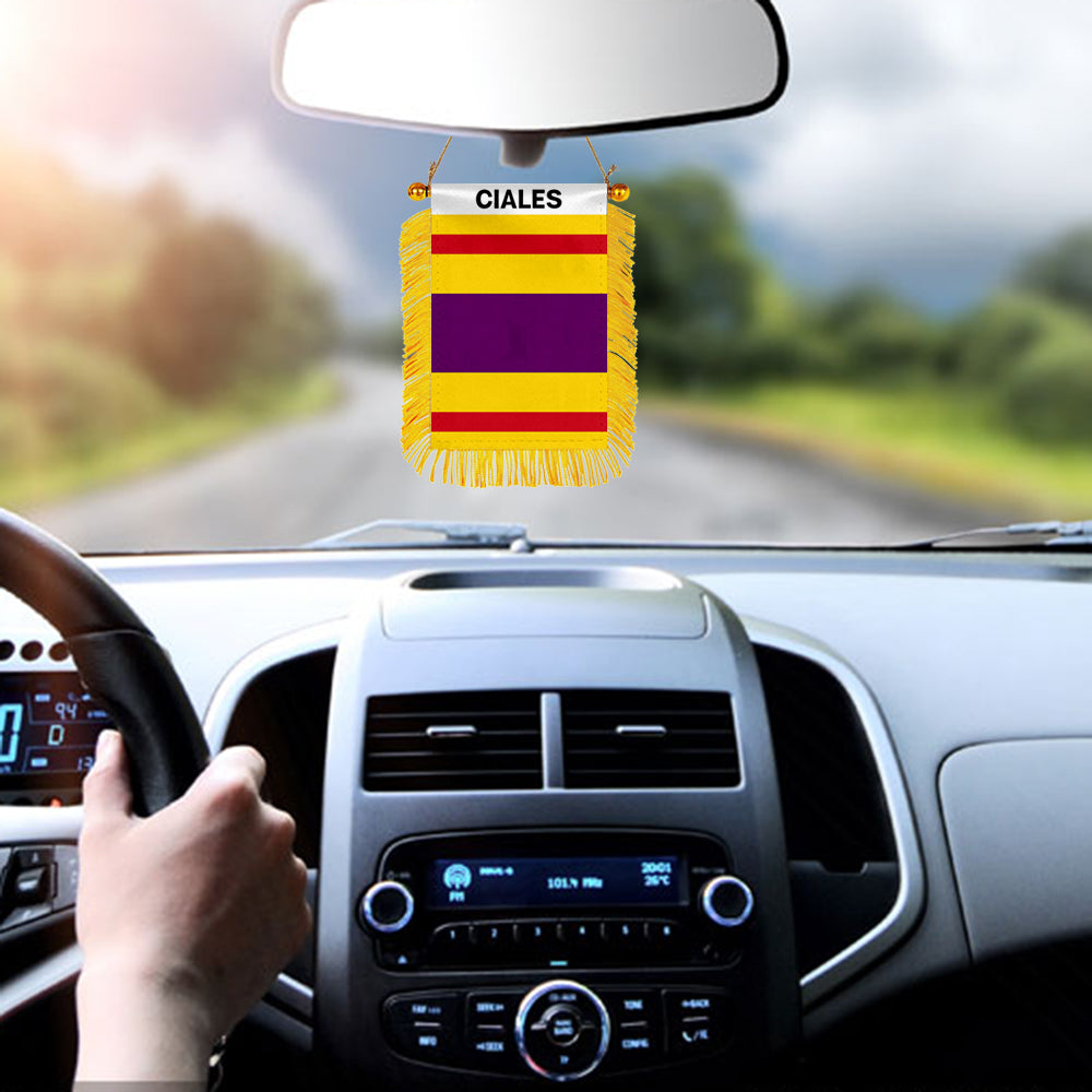 Ciales, Puerto Rico Flag Mini Car Rearview Mirror Flag Banner - 2PC