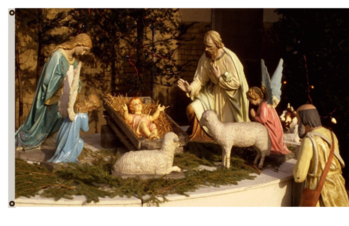 Christmas holiday jesus manger sheep needles people angels figurines Flag Indoor and outdoor banner