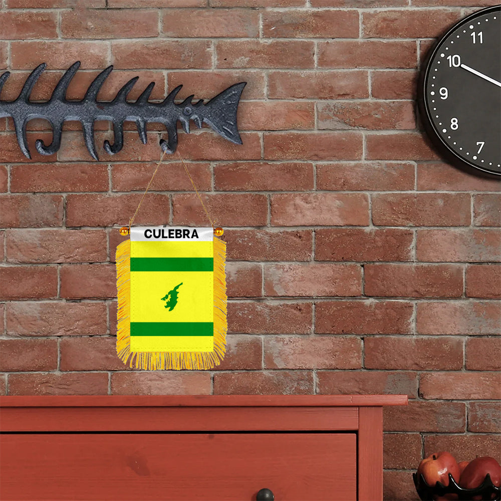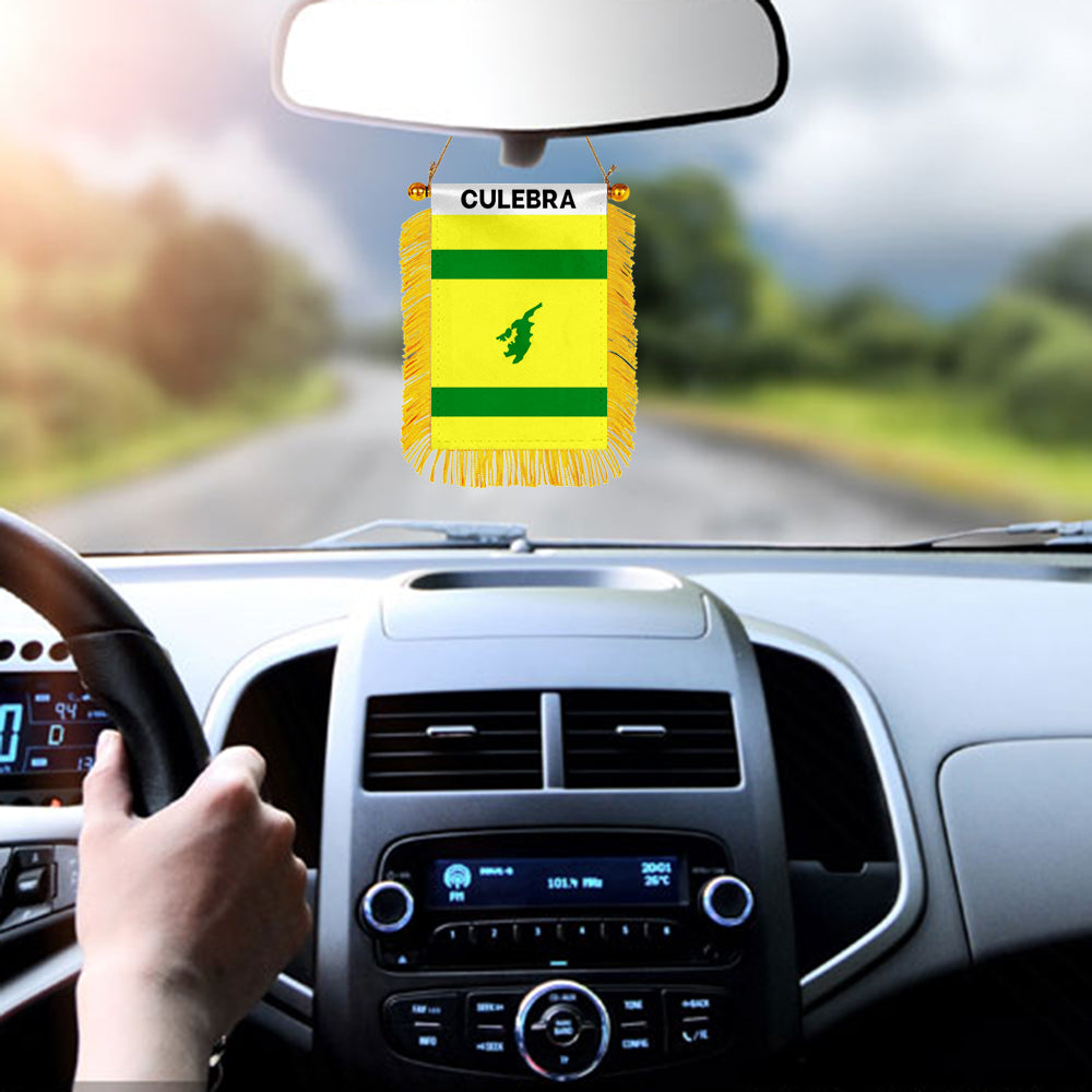 Culebra, Puerto Rico Flag Mini Car Rearview Mirror Flag Banner - 2PC