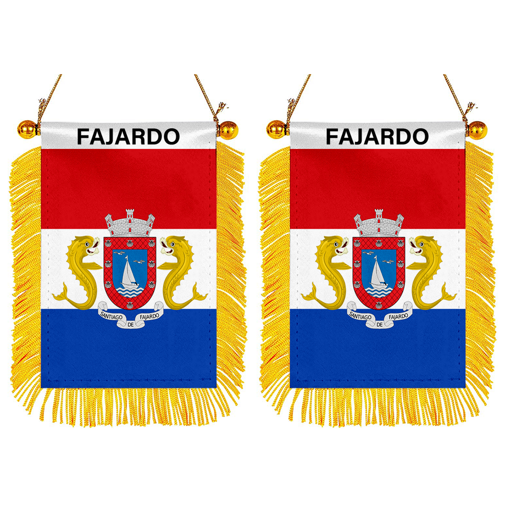 Fajardo, Puerto Rico Flag Mini Car Rearview Mirror Flag Banner - 2PC