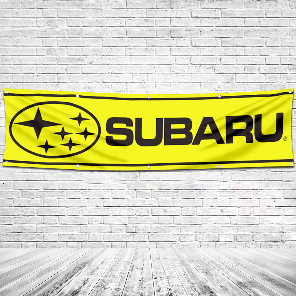 Fyon Car Motor Garage Workshop Banner Work for Subaru Tecnica Flag Yellow 2x8 Feet