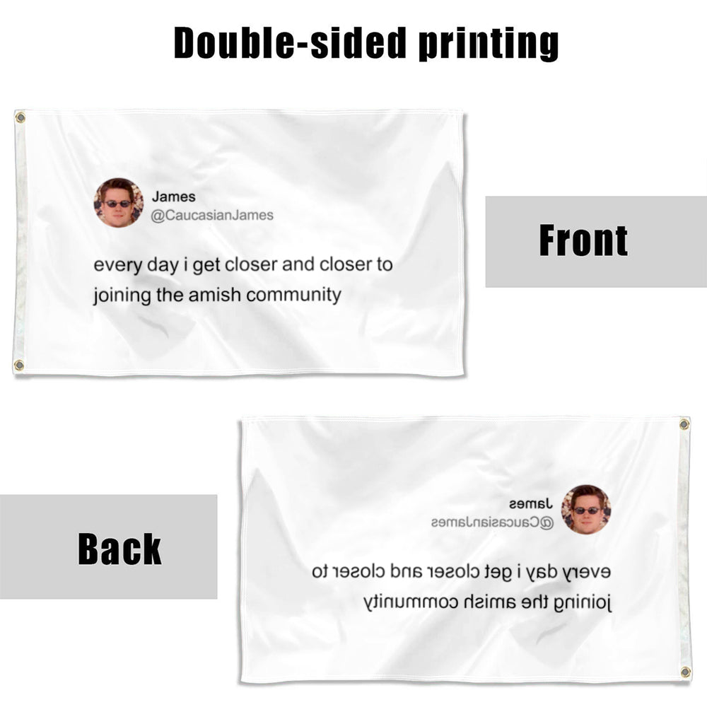 Fyon Caucasion James Every day i get closer and closer to joining the amish community Funny tweet Flag Banner