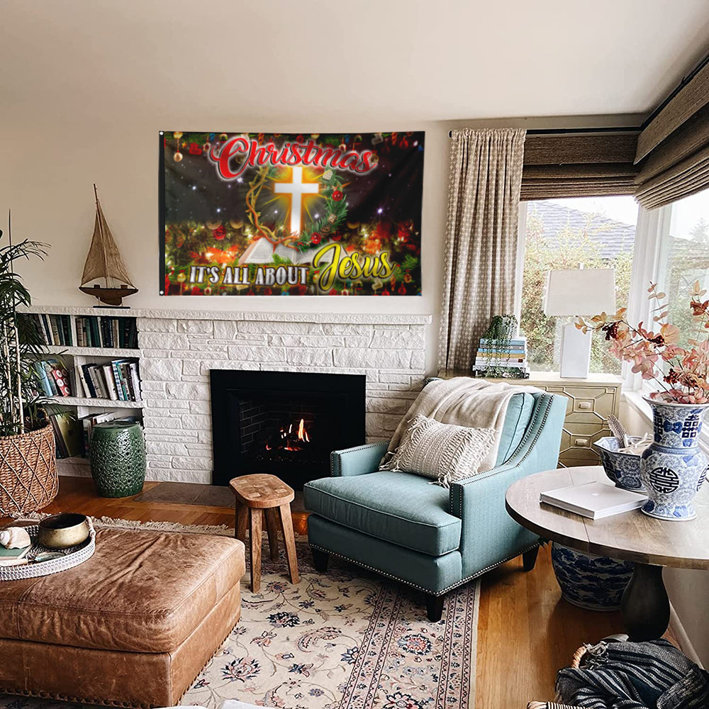 Fyon Christmas Jesus It’s All About Jesus Flag 41337 Indoor and outdoor banner