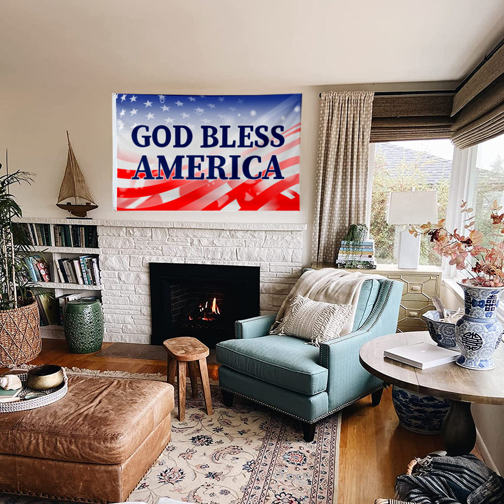 Fyon God Bless America Flag Indoor and Outdoor Banner