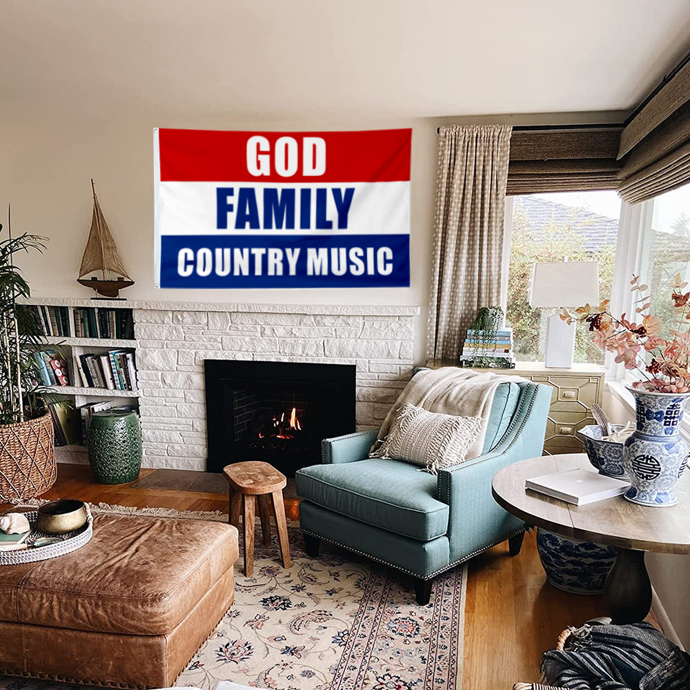 Fyon God Family Country Music Flag Indoor and Outdoor Banner