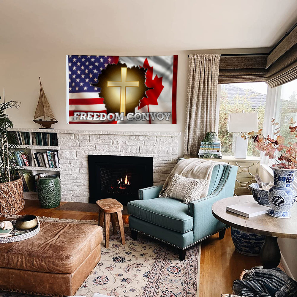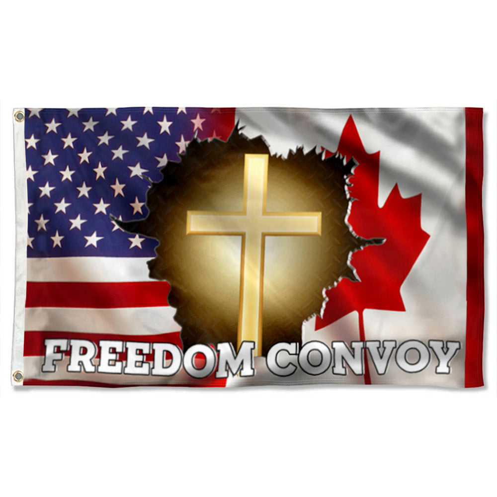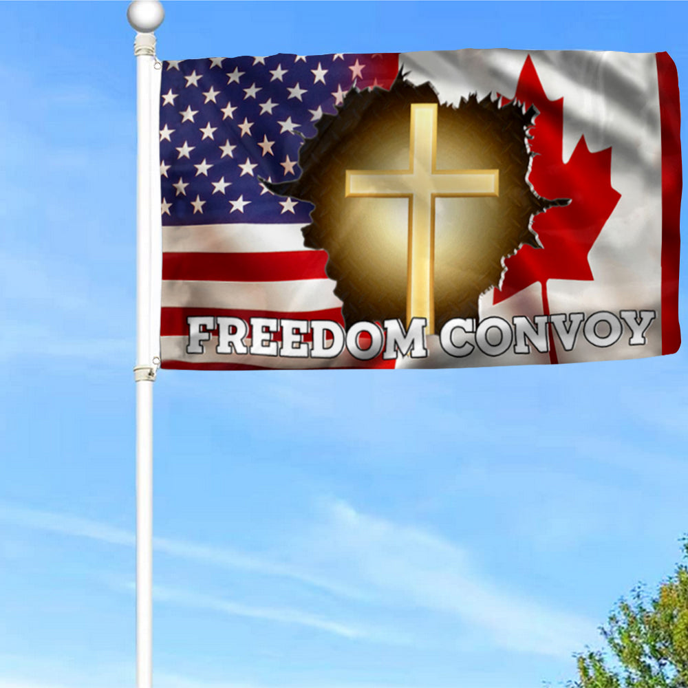 Fyon God Freedom Convoy 2022 Jesus Support Canadian Trucker Mandate Freedom American Canadian Flag 41045 Indoor and outdoor banner