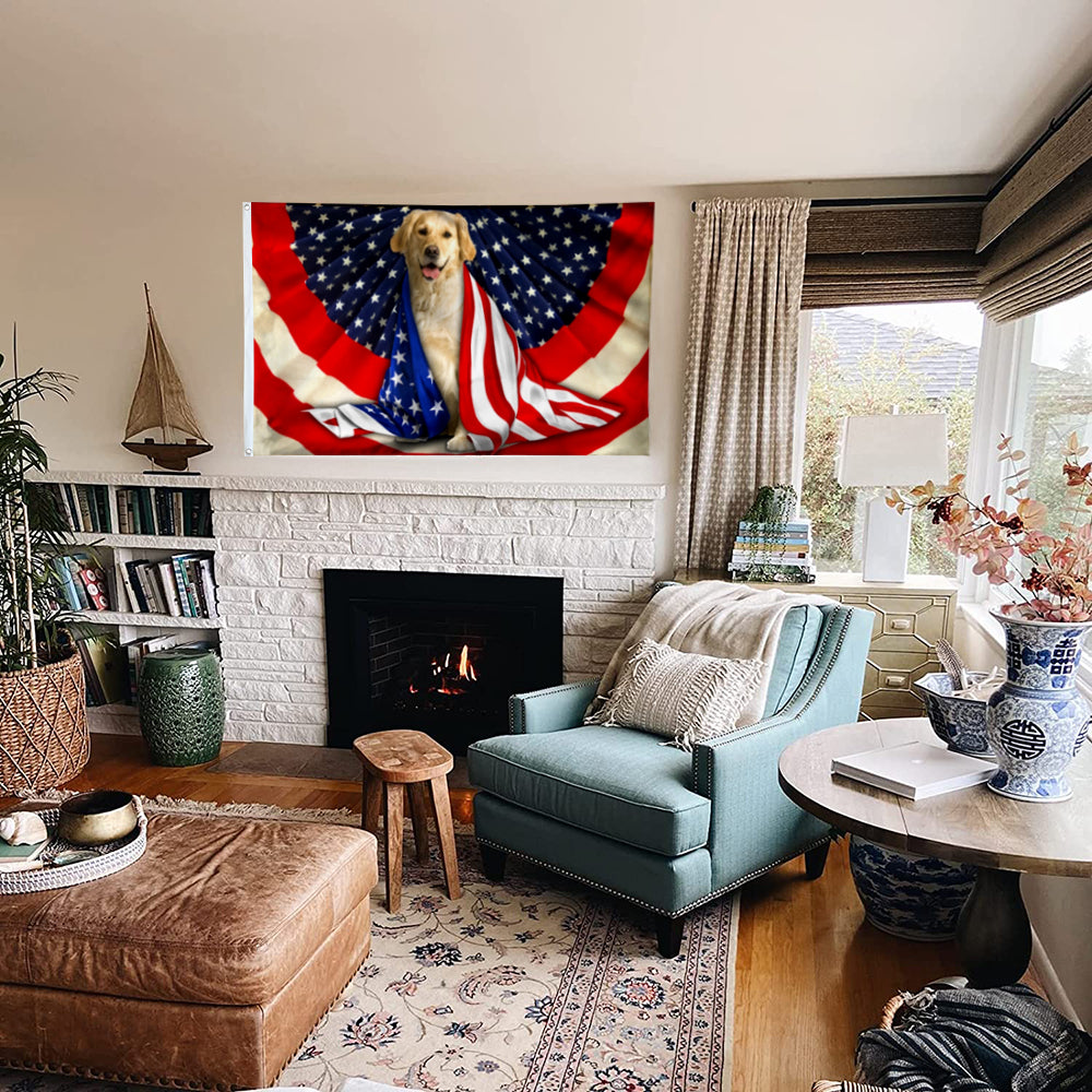 Fyon Golden Retriever Patriotic Dog Bunting American Flag 41421 Indoor and outdoor banner