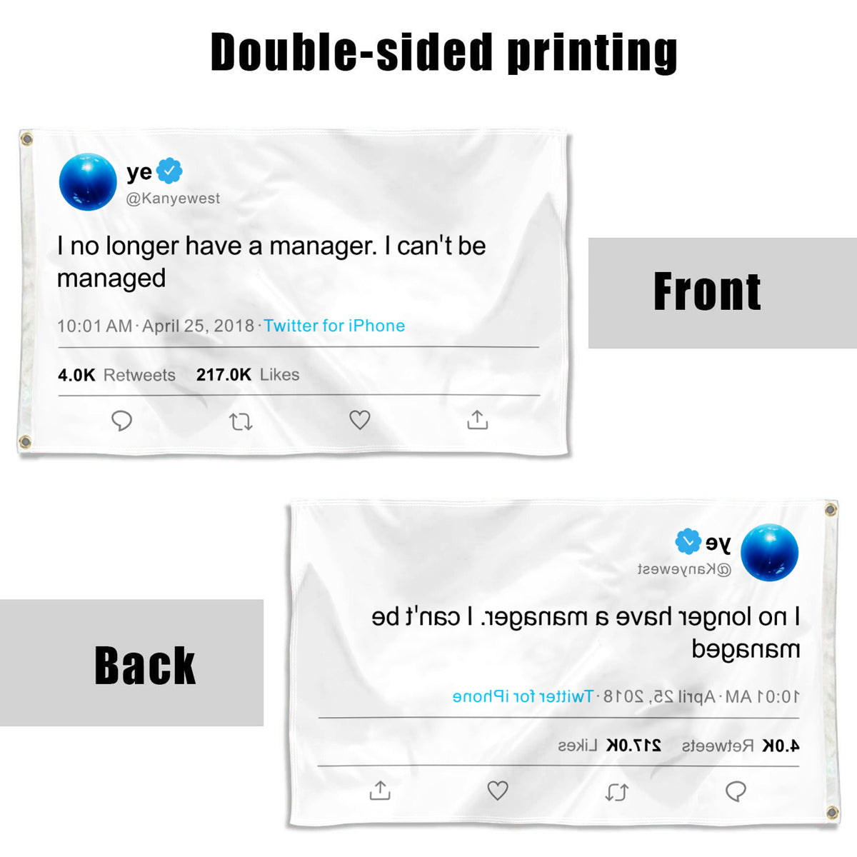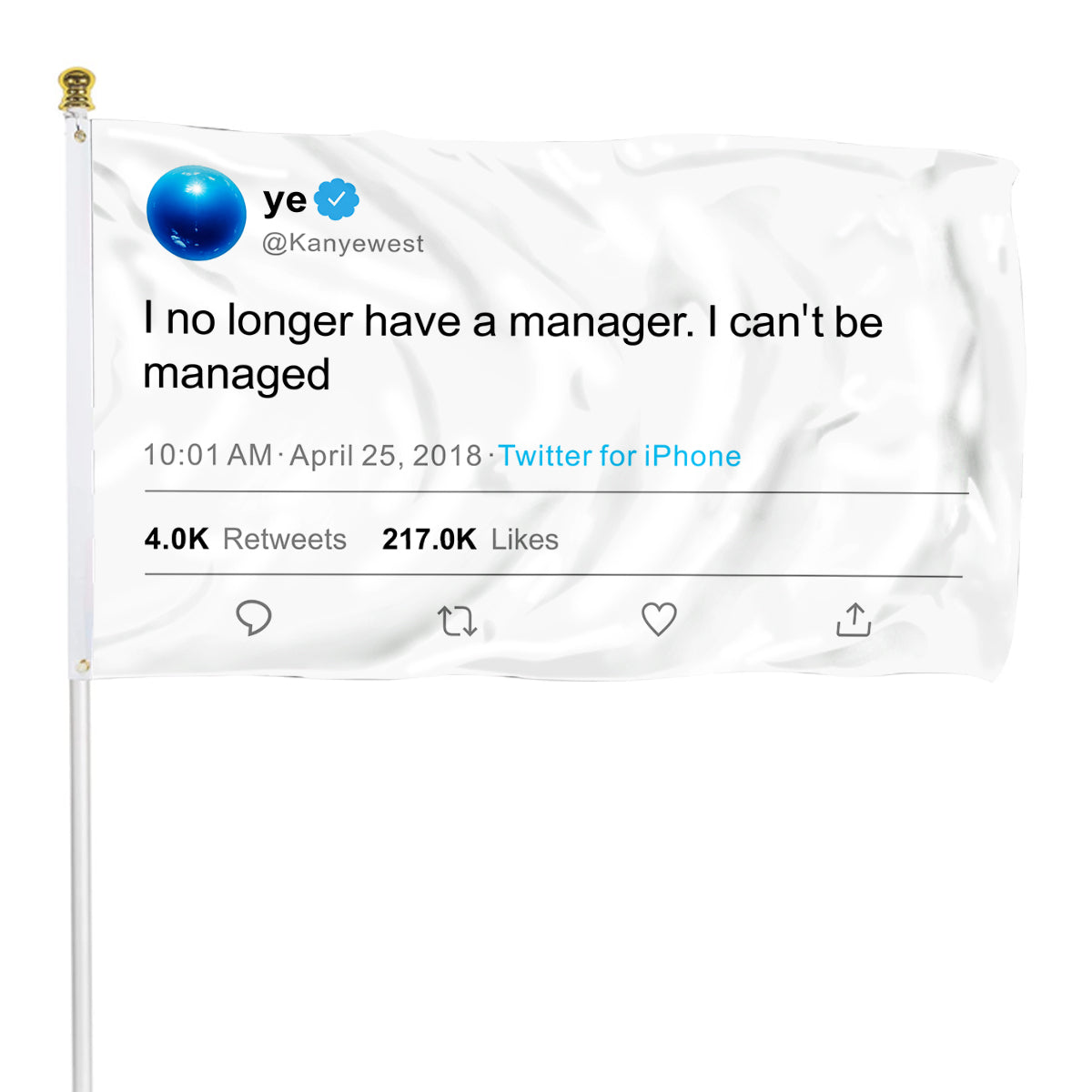 Fyon Ye Tweet Funny flag I no longer have a manager I can't be managed Indoor and outdoor banner
