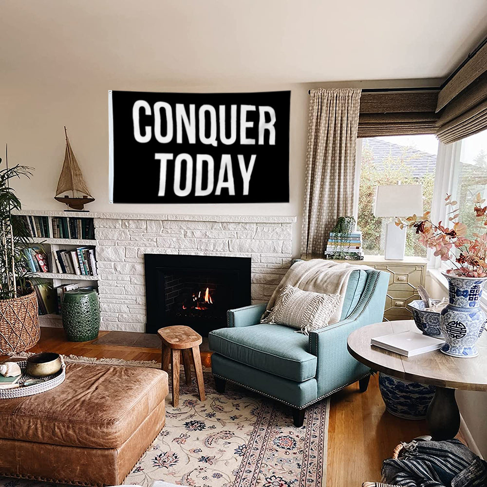 Fyon Gym Motivation Gonquer Today Flag Indoor and Outdoor Banner