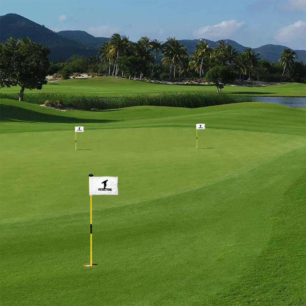 ⭐ Perfect flags for most practice poles come in 3/8" or 1/2" diameter. Suitable for Indoor/ Outdoor/ Backyard/ Garden/ Putting Green/ Golf Training Course/Driving Range, etc;