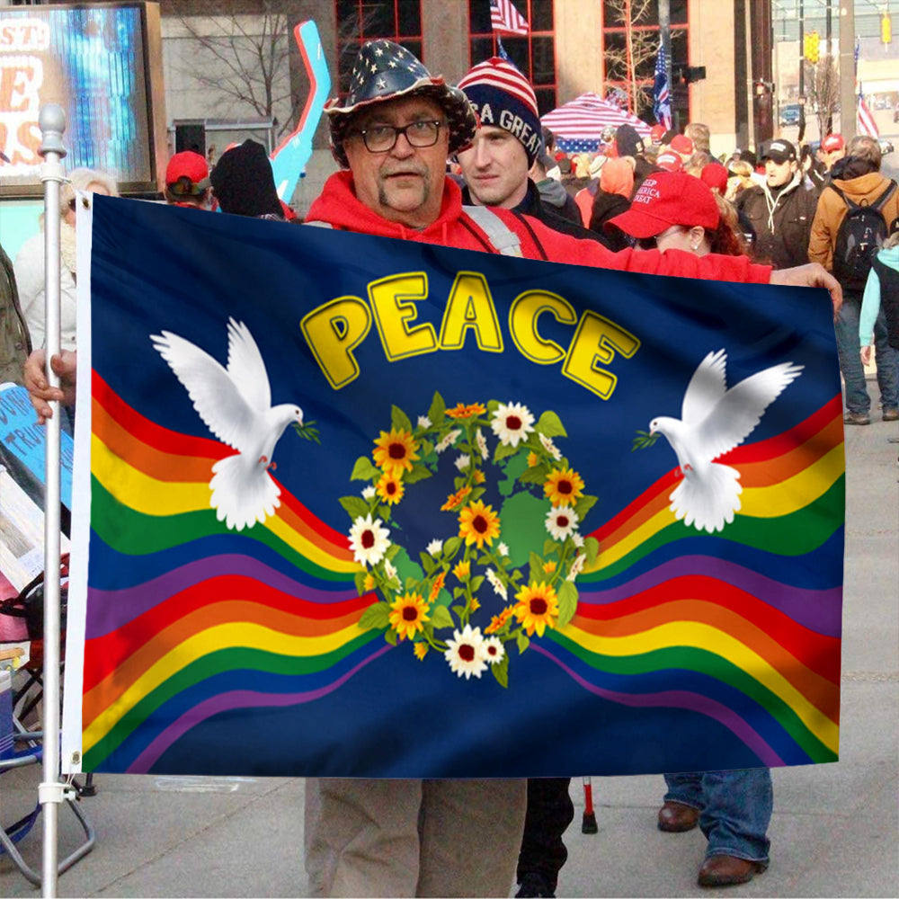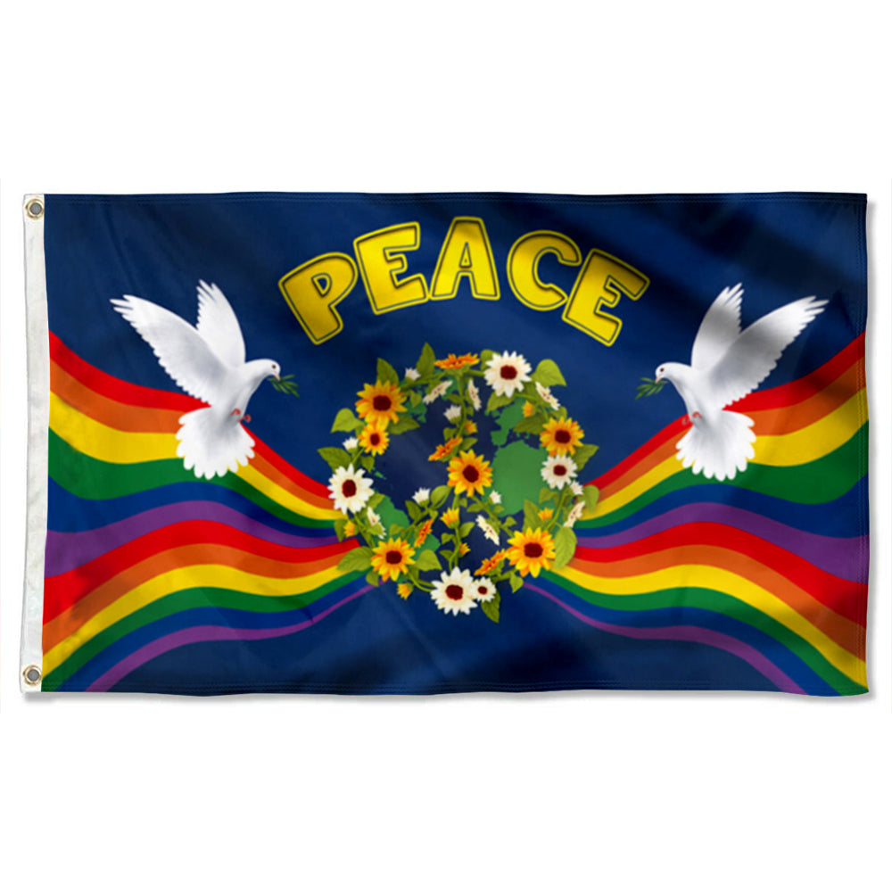 Fyon Hippie Flag Dove Peace Hippie Flower Flag 41566 Indoor and Outdoor Banner