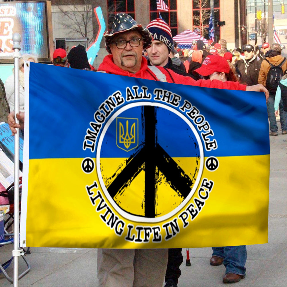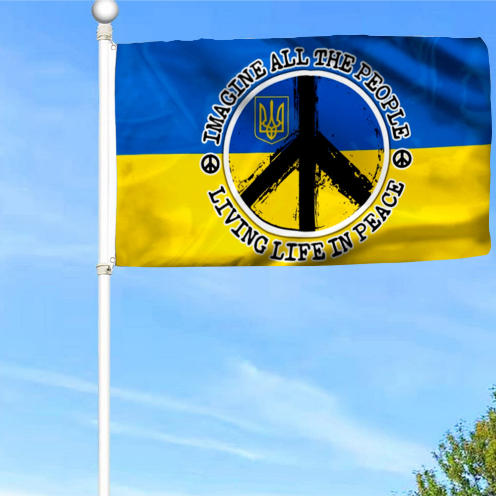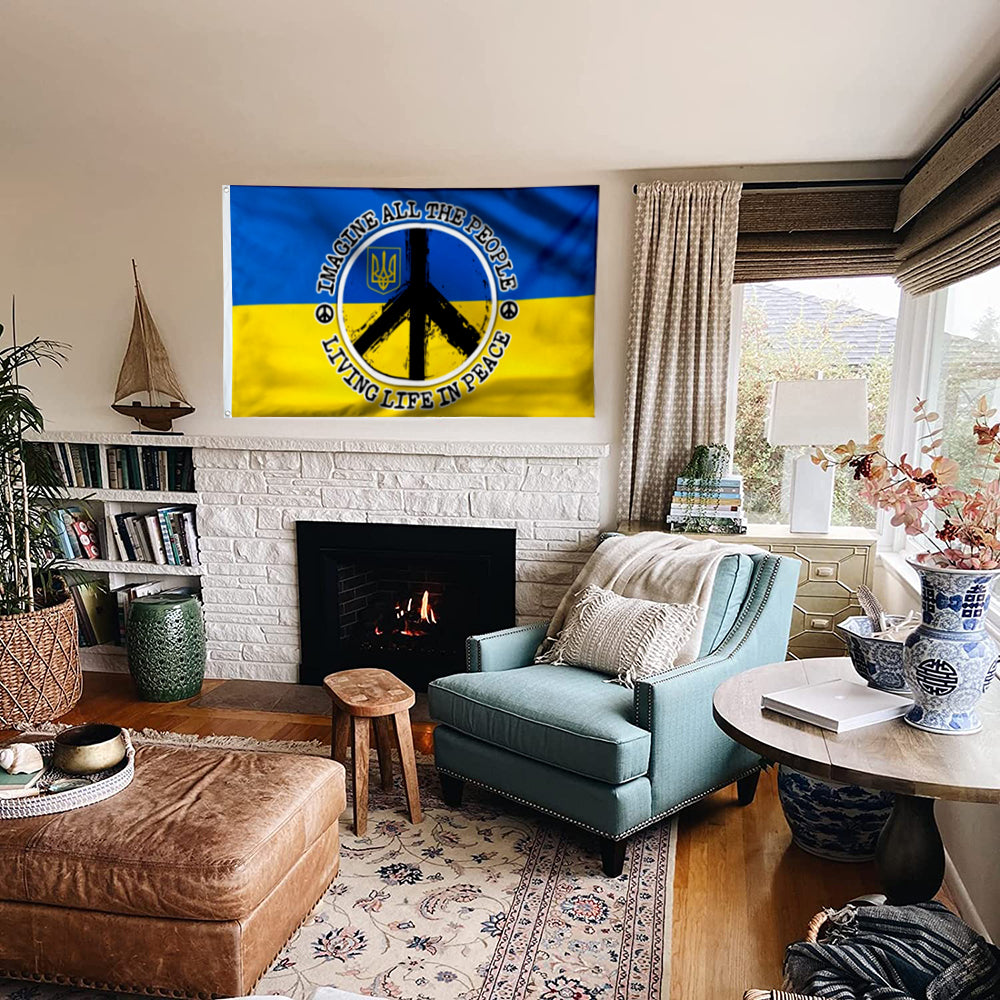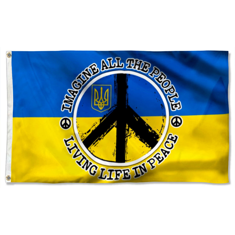 Fyon Hippie. Imagine All The People Living Life In Peace Ukraine Flag 41576 Indoor and Outdoor Banner