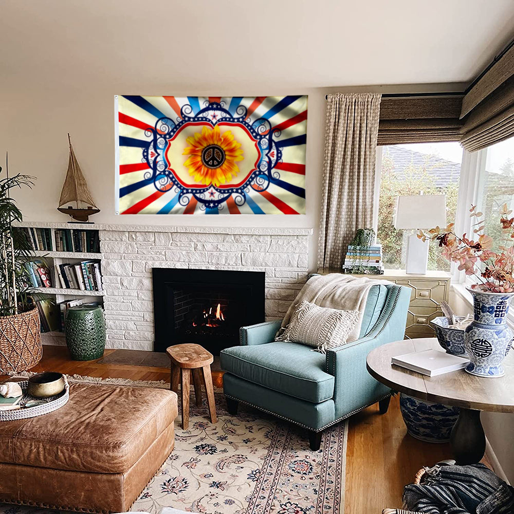 Fyon Hippie Sunflower Flag 41574 Indoor and Outdoor Banner