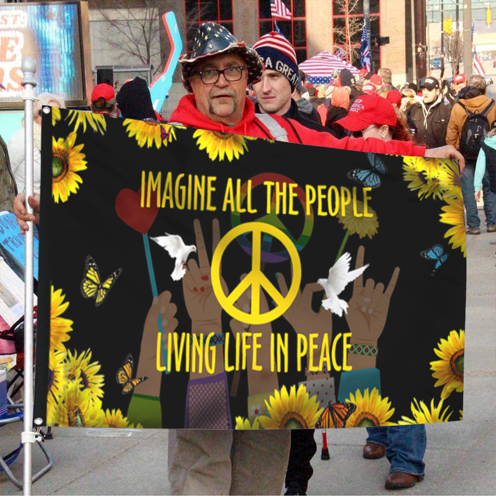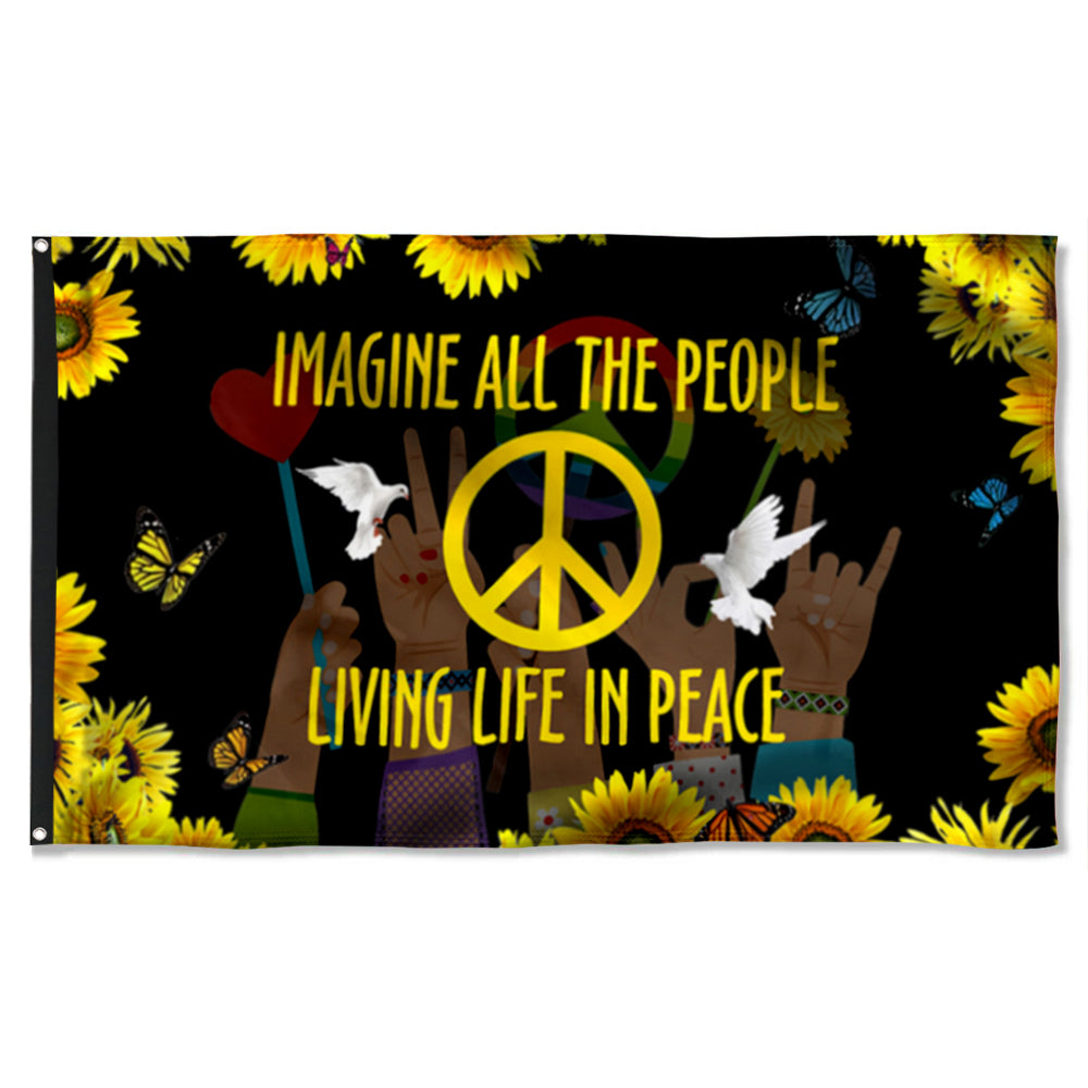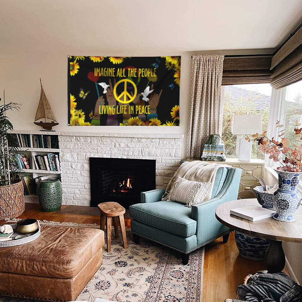 Fyon Hippie Sunflower Peace Sign Imagine All The People Living Life In Peace Flag 41575 Indoor and Outdoor Banner