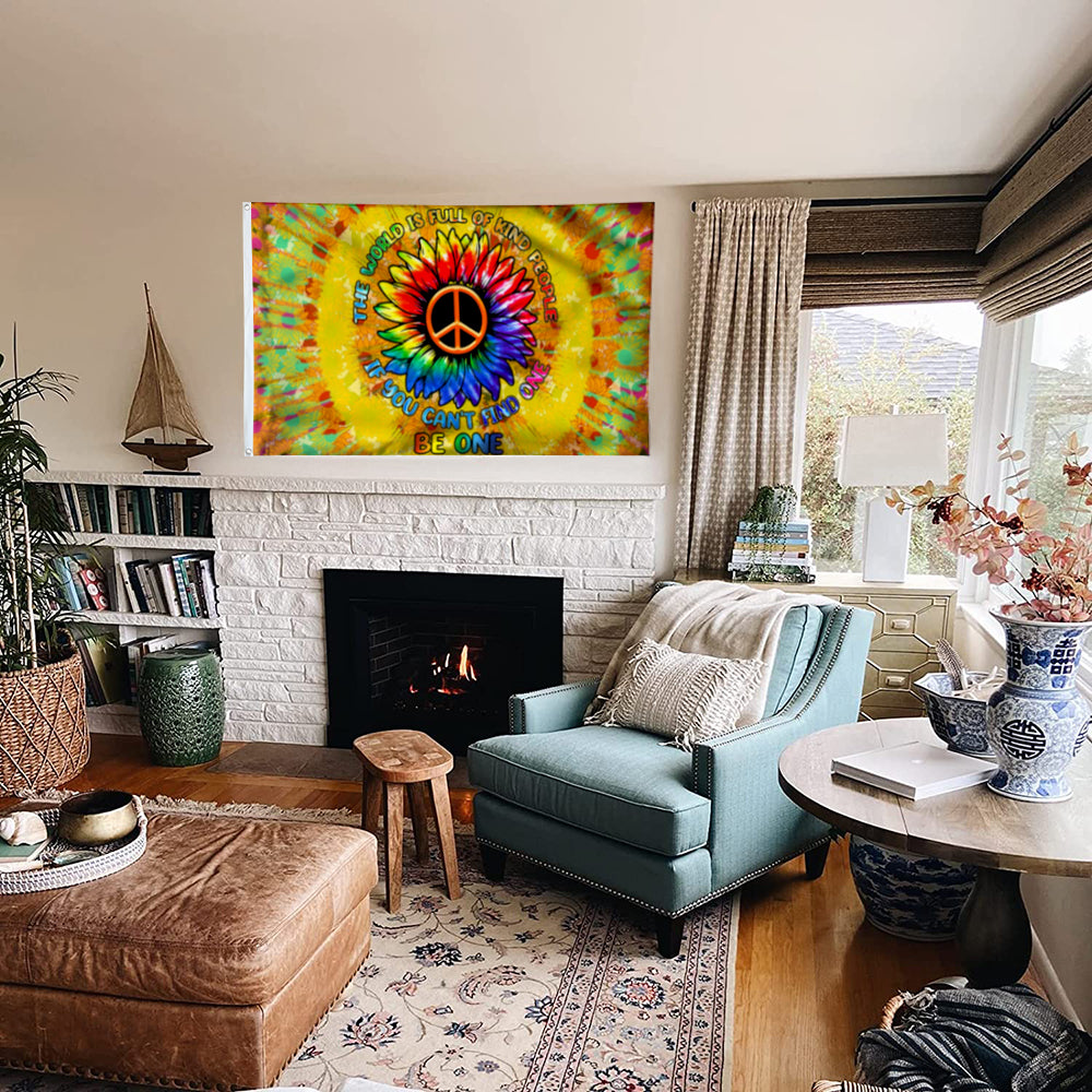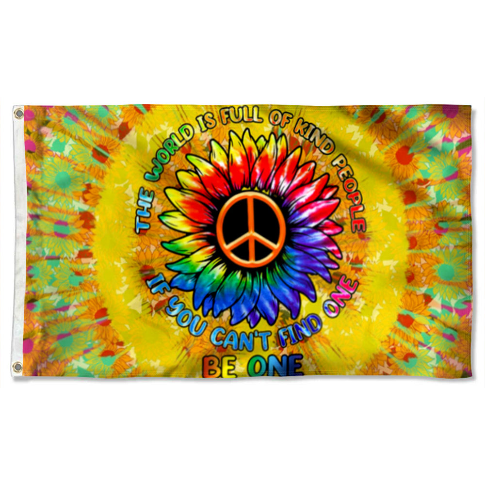 Fyon Hippie The World Is Full Of Kind People, Be One Flower Flag 41570 Indoor and Outdoor Banner