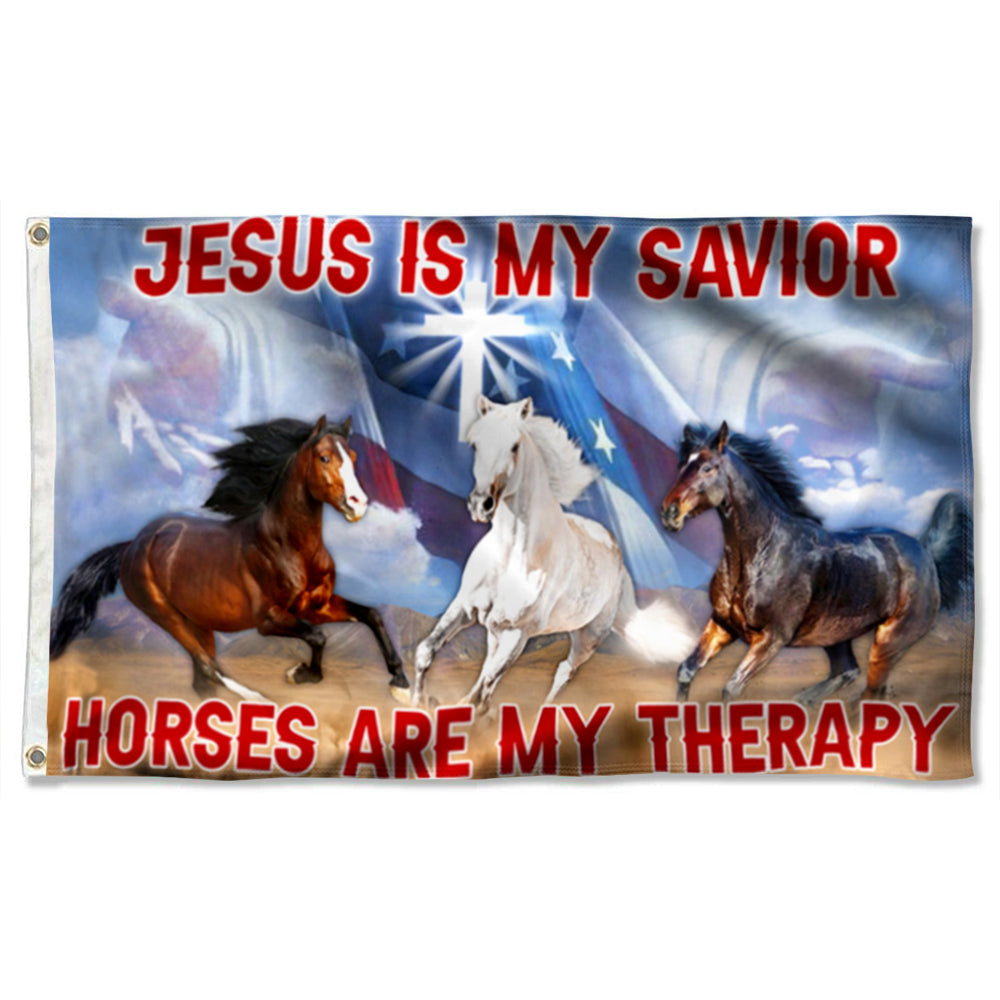 Fyon Horses Jesus Is My Savior Horses Are My Therapy Flag 41008 Indoor and outdoor banner