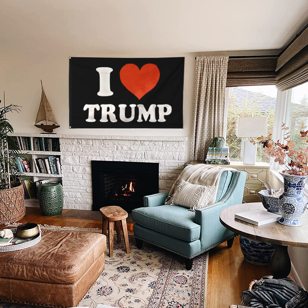 Fyon I love Trump Flag Black Indoor and Outdoor Banner