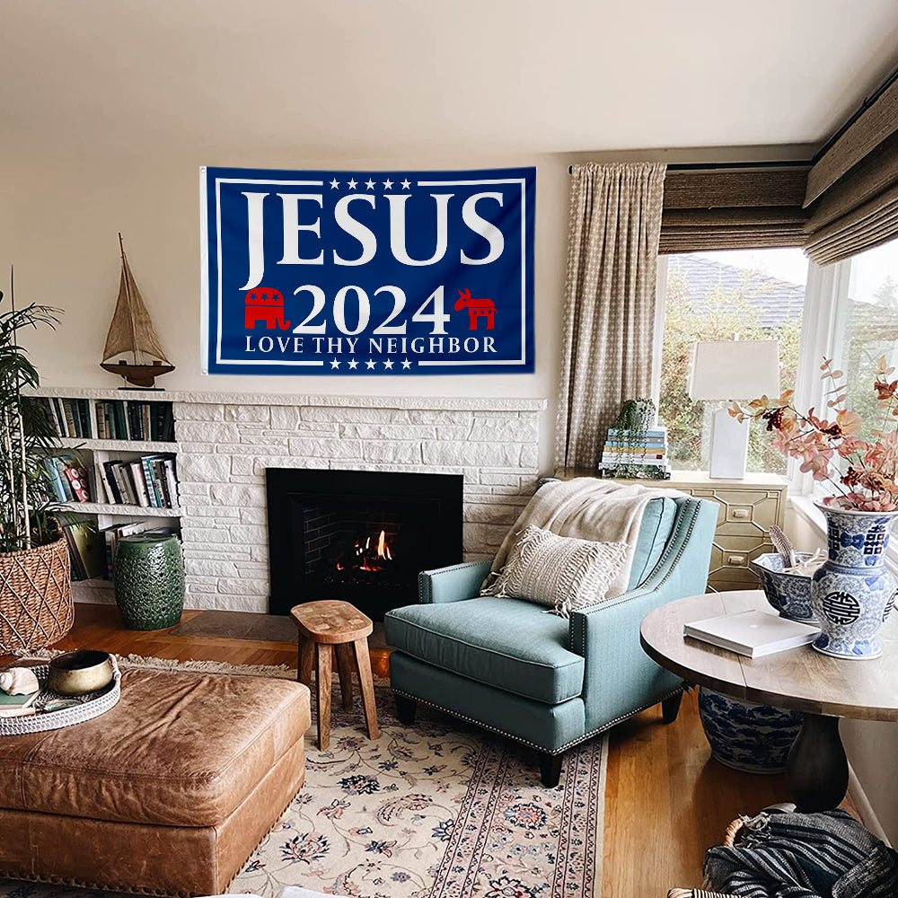 Fyon Jesus 2024 Flag FREE SHIPPING Our Only Hope Love Neighbor USA Poster Sign Flag Indoor and outdoor banner