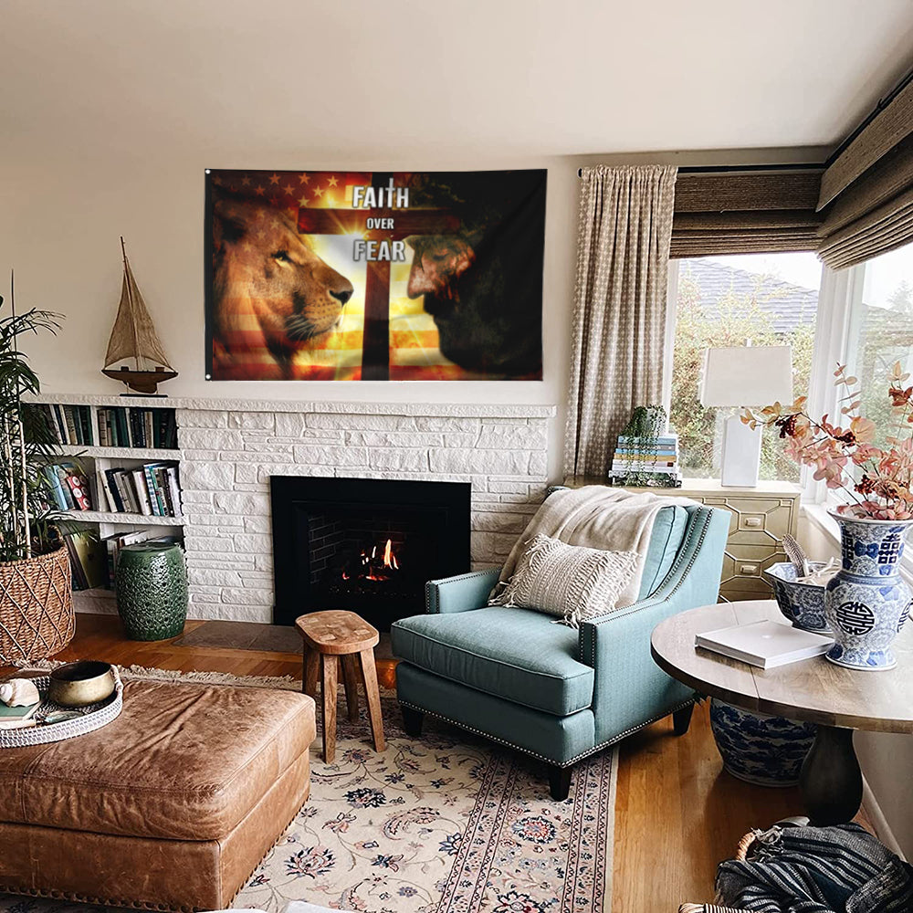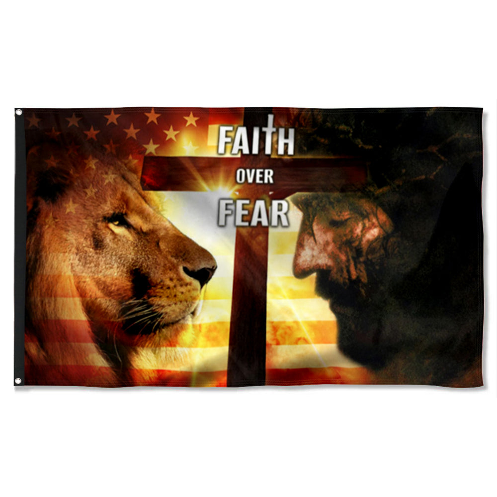 Fyon Jesus And Lion Faith Over Fear Flag 41021 Indoor and outdoor banner