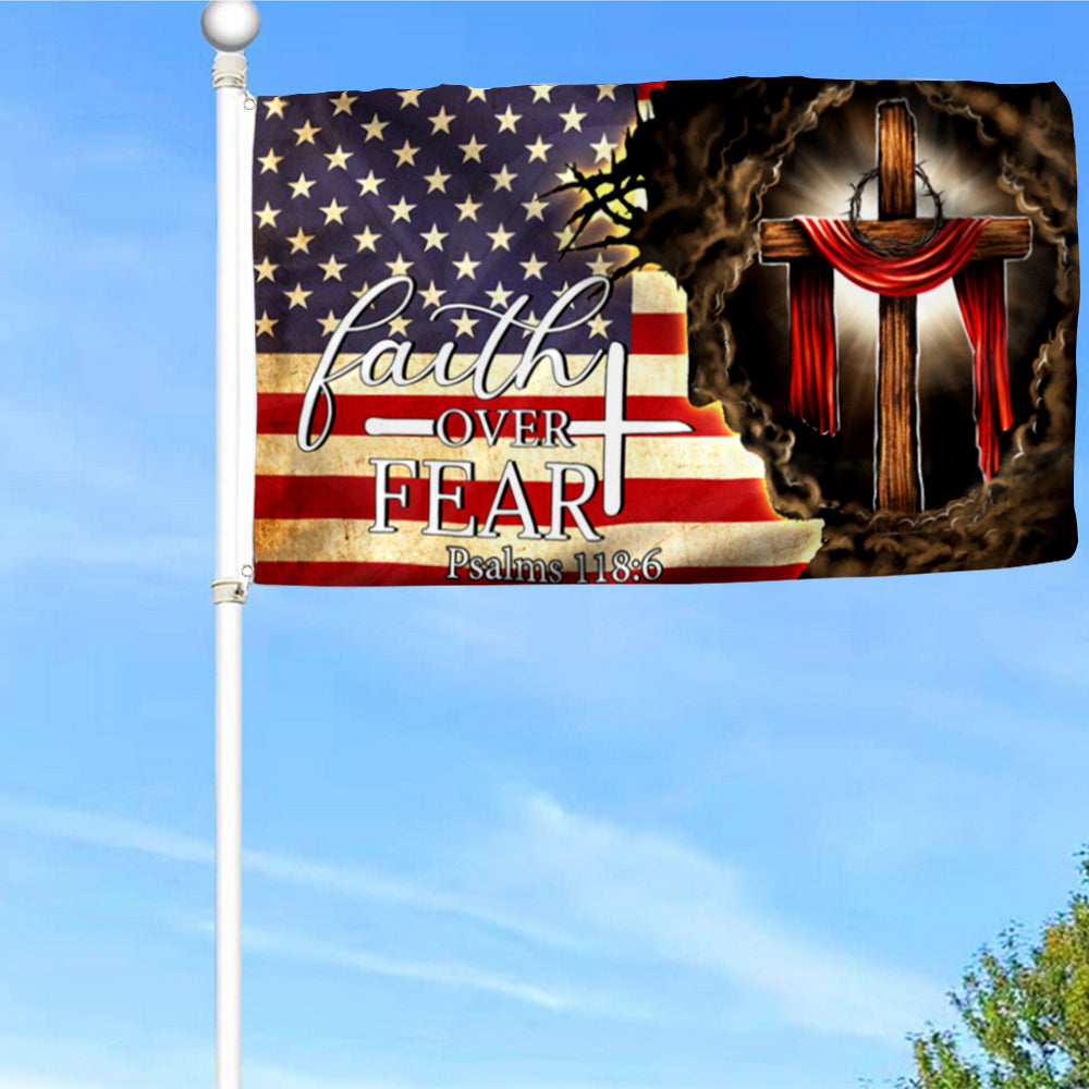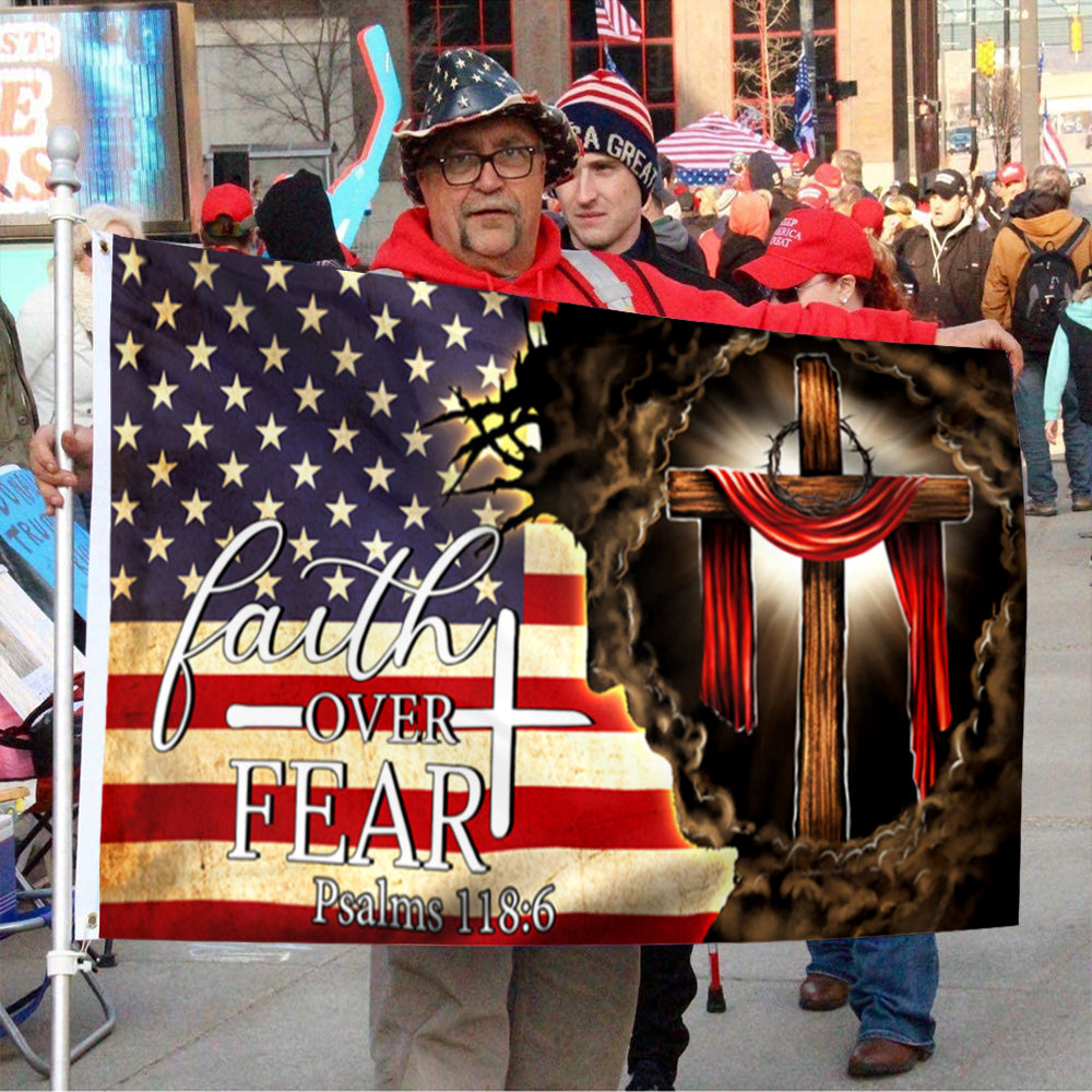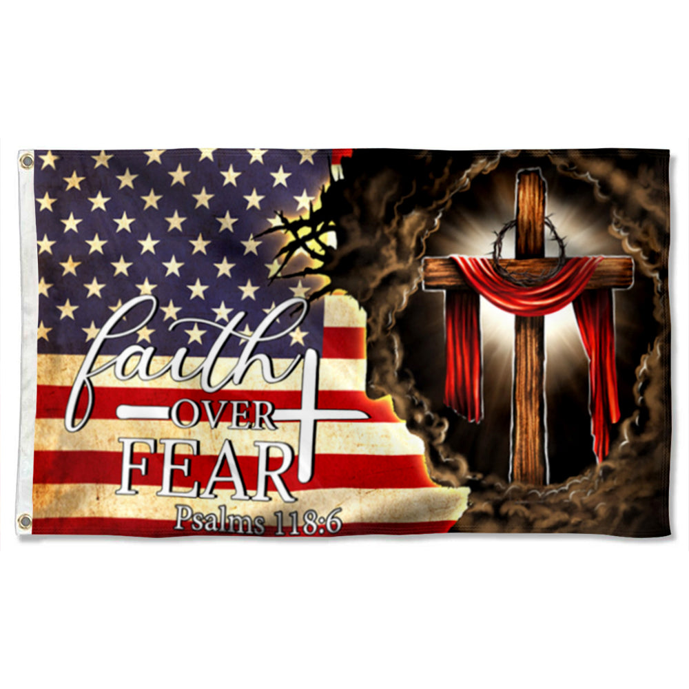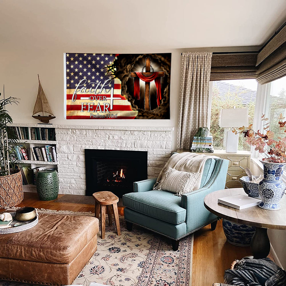 Fyon Jesus. Christian Cross. Faith Over Fear American Flag 41147 Indoor and outdoor banner