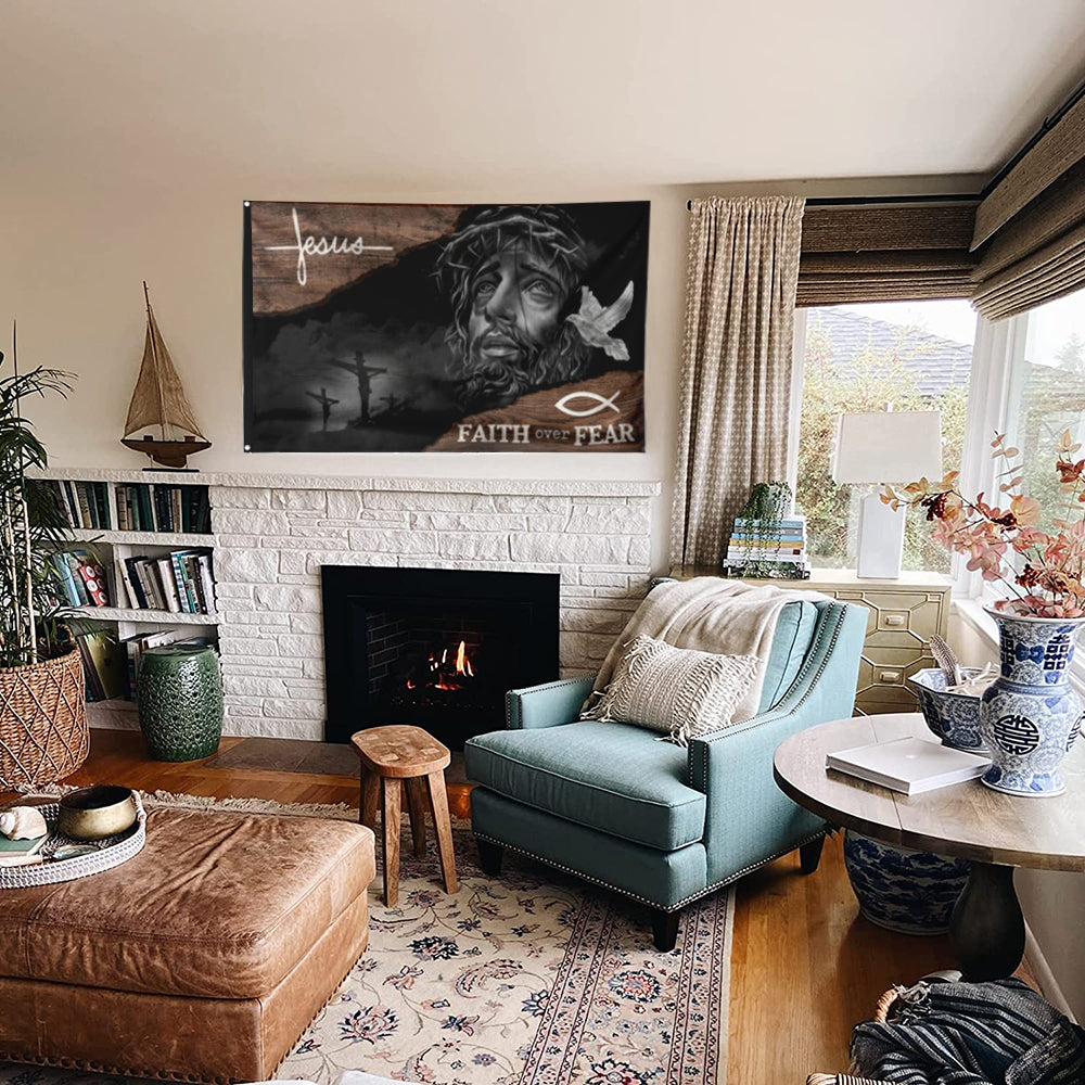 Fyon Jesus Faith Over Fear Respect Flag 41037 Indoor and outdoor banner