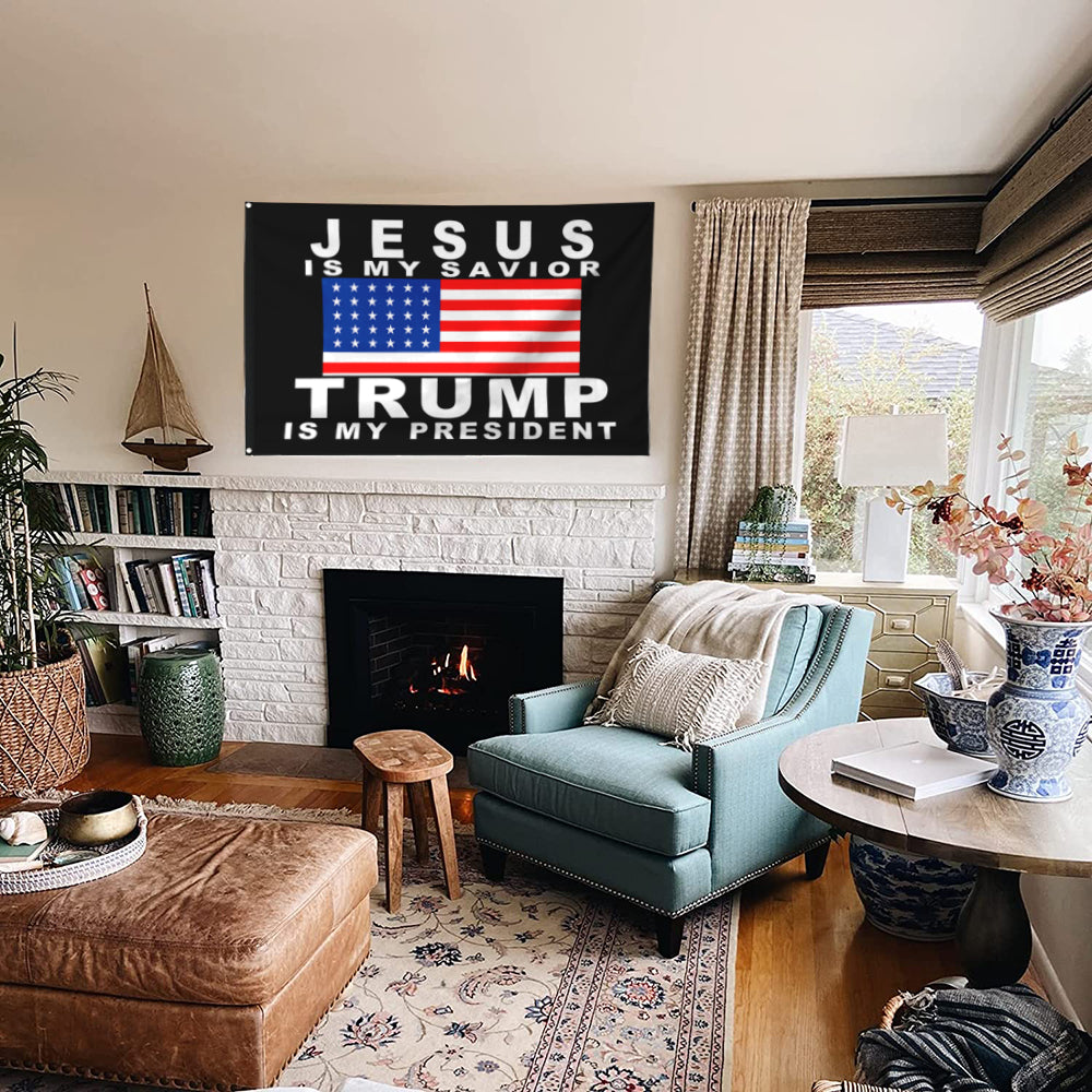 Fyon Jesus is my Savior Trump is my President Flag Indoor and Outdoor Banner
