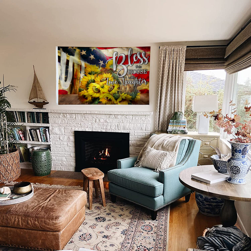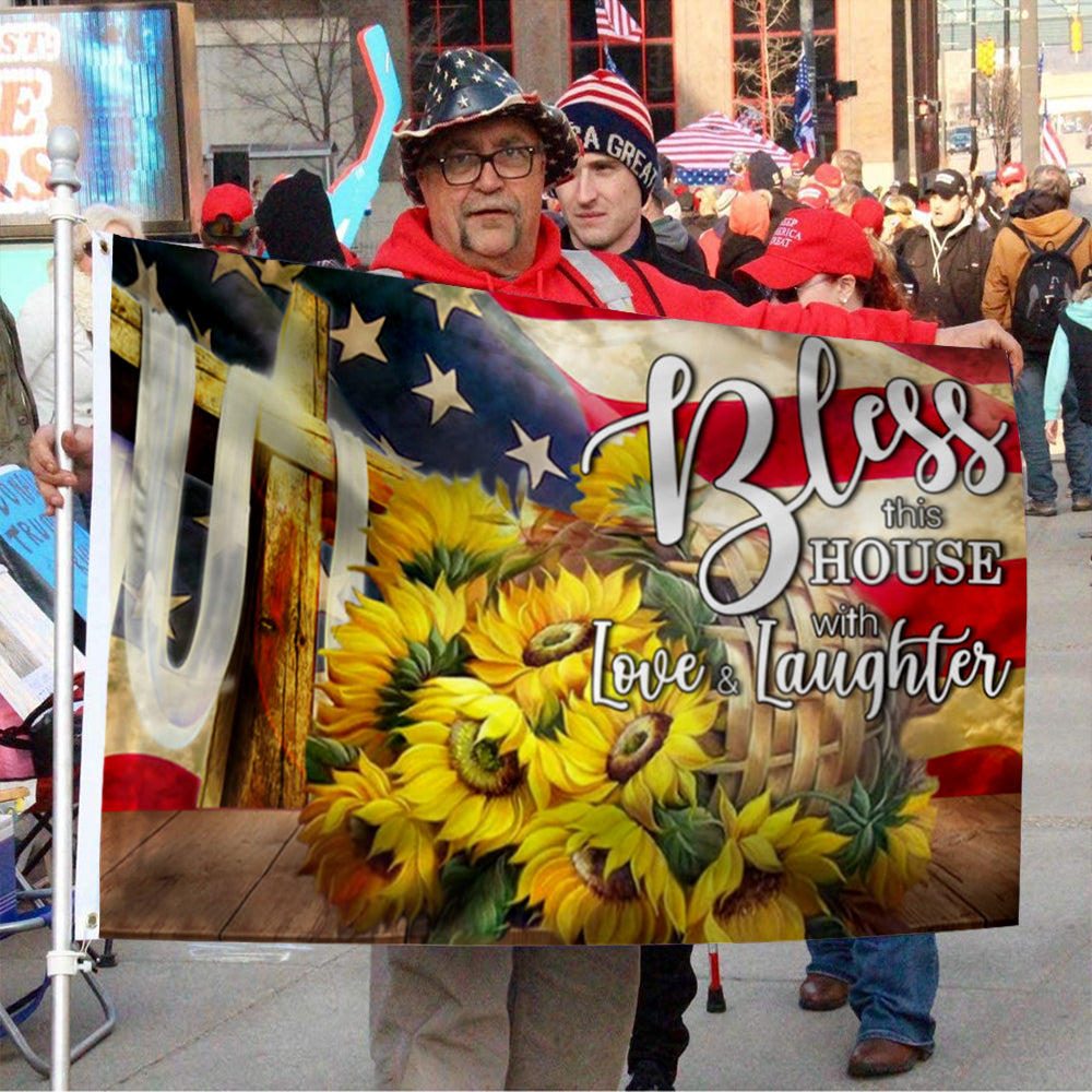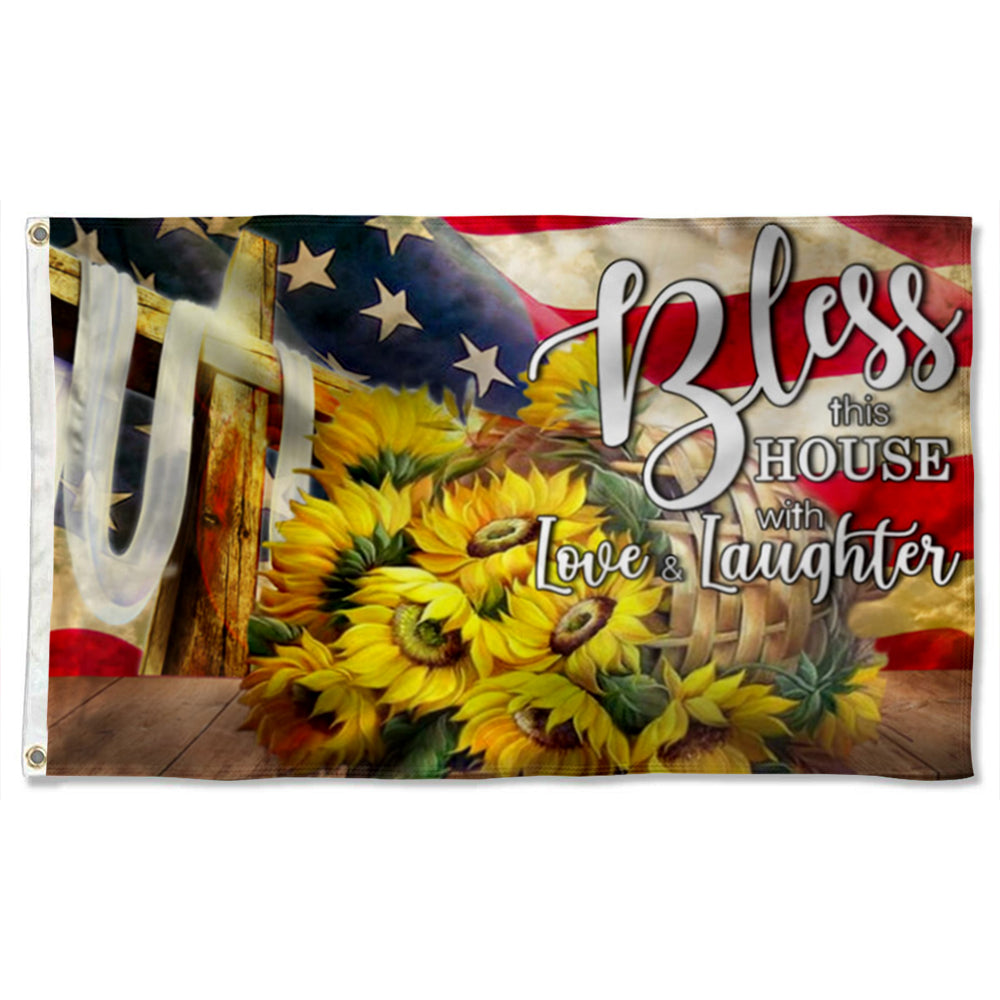 Fyon Jesus With Sunflower Bless This House With Love And Laughter Flag 41149 Indoor and outdoor banner