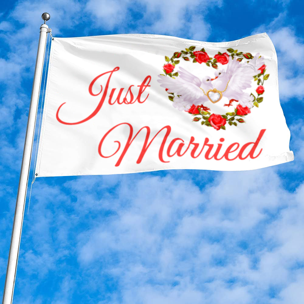 Fyon Just Married Flag 2151 Flag Indoor and outdoor banner