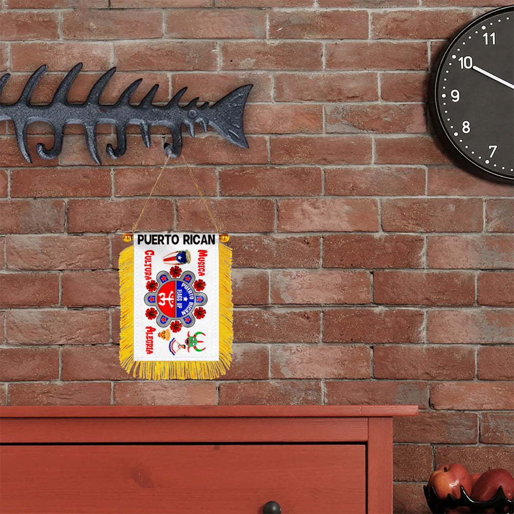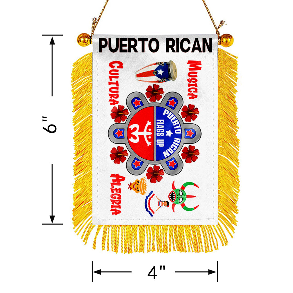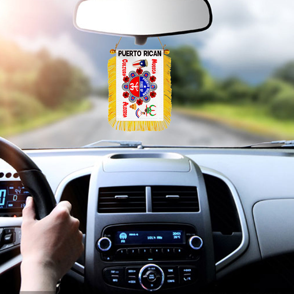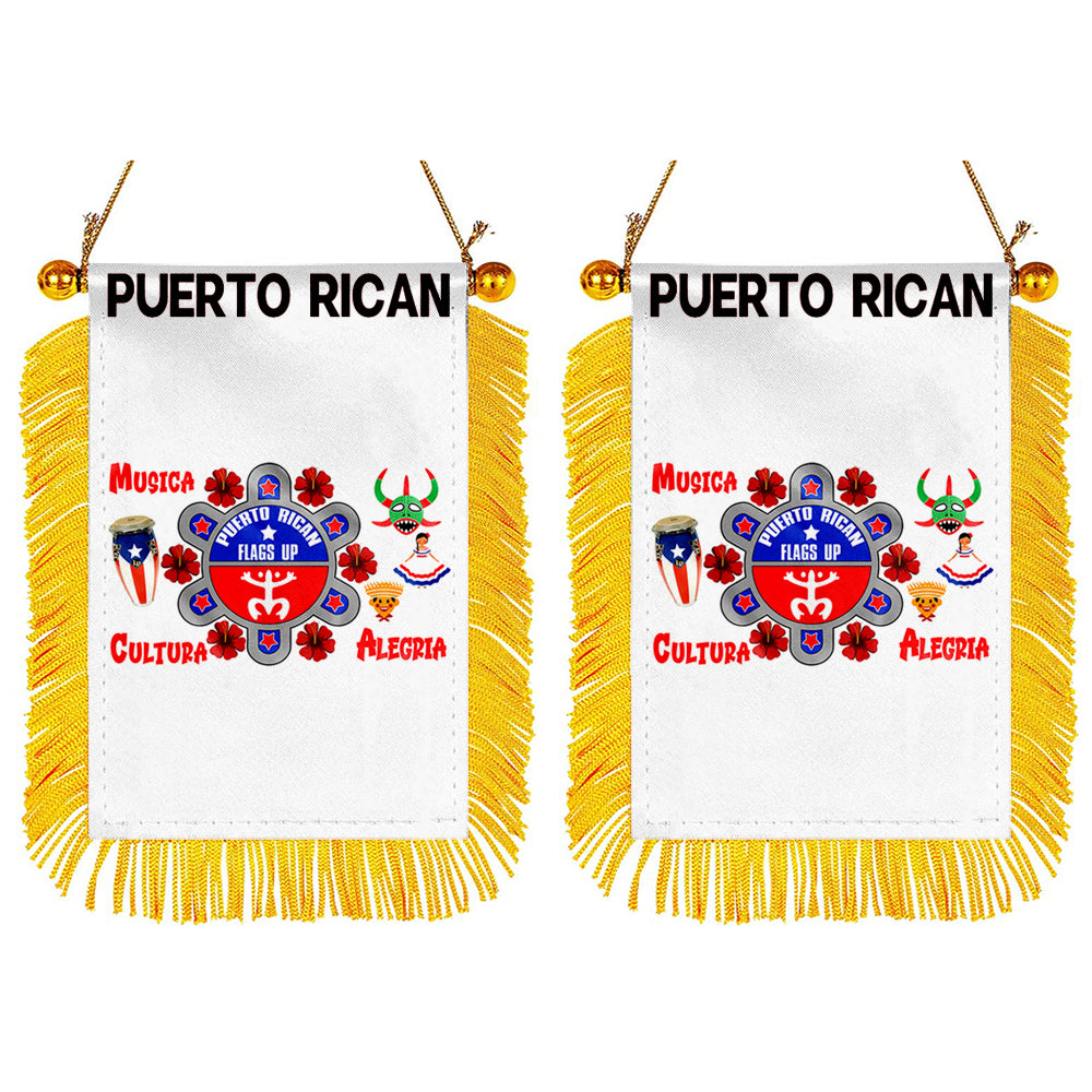 Fyon Musica, Cultura Alegria, Puerto Rican Mini Car Rearview Mirror Flag Banner - 2PC