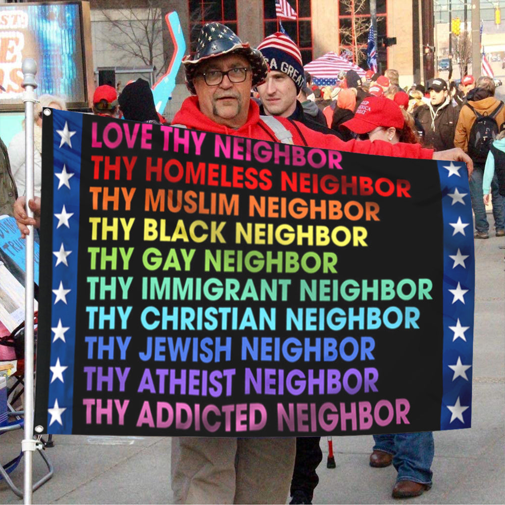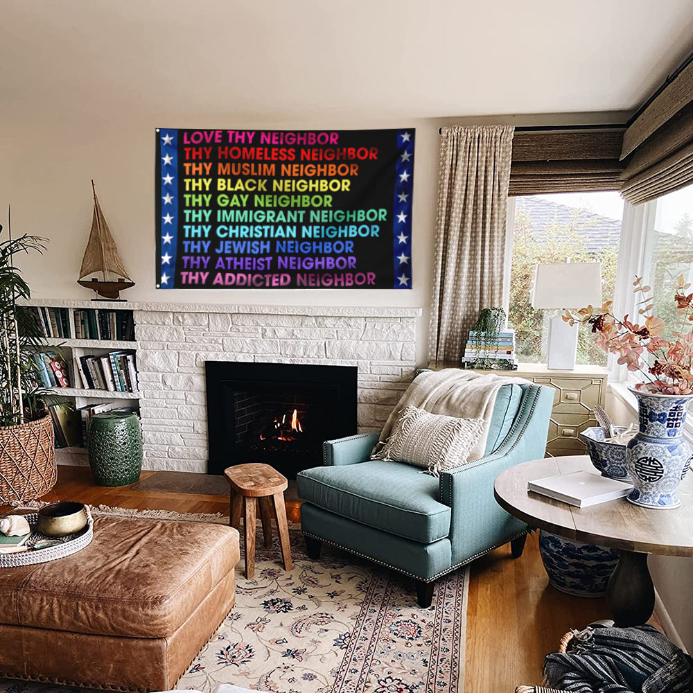 Fyon Love Thy Neighbor Peace Feminism BLM Homeless LGBT Flag Banner 41577 Indoor and Outdoor Banner