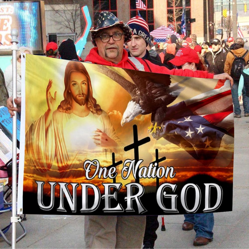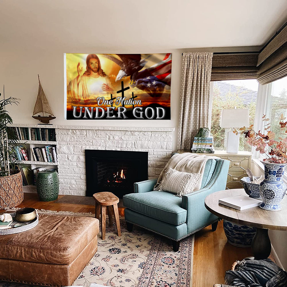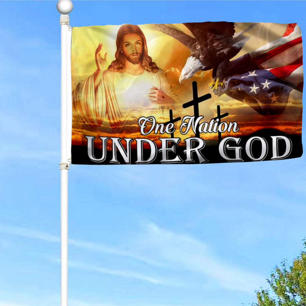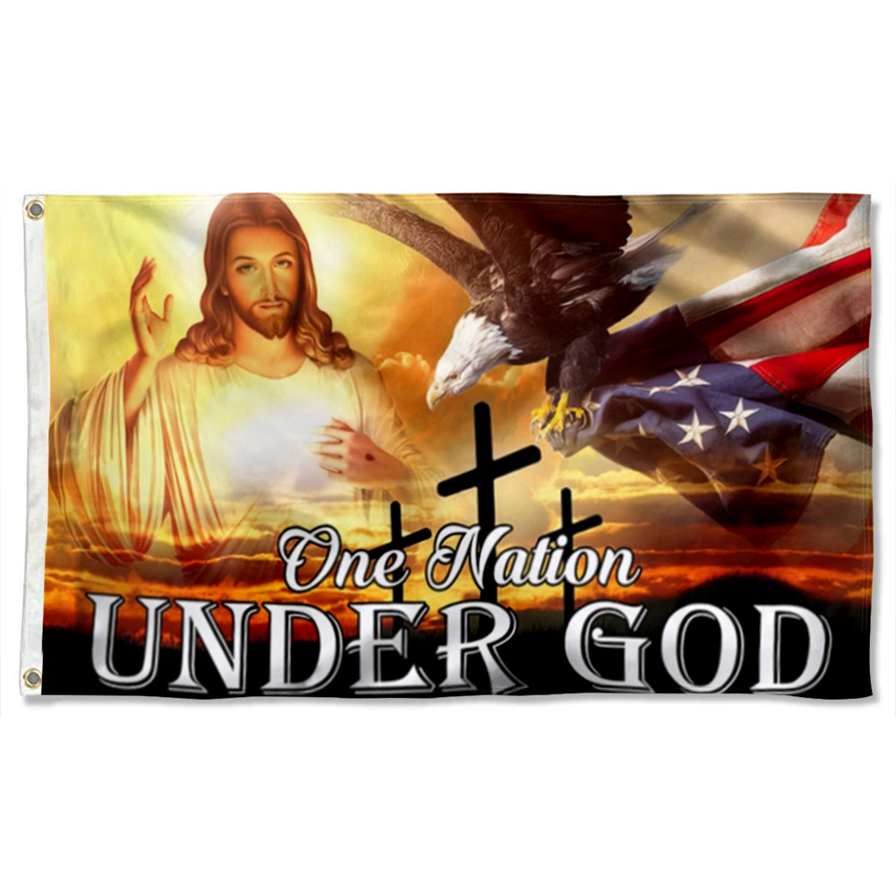 Fyon One Nation Under God, Christian Cross, American Eagle Flag 41136 Indoor and outdoor banner