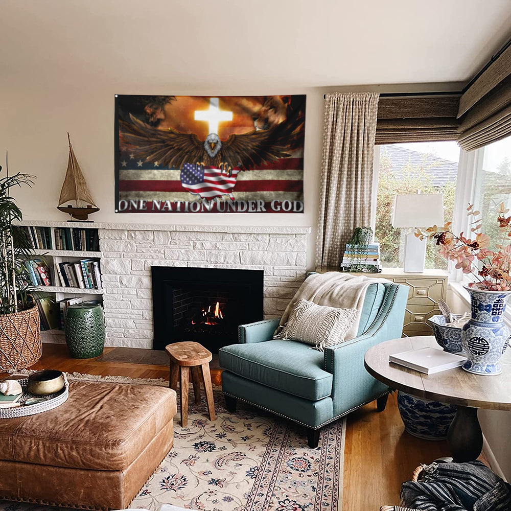 Fyon One Nation Under God, Jesus and Lion Of Judah Cross US Map American Patriot Flag 41140 Indoor and outdoor banner
