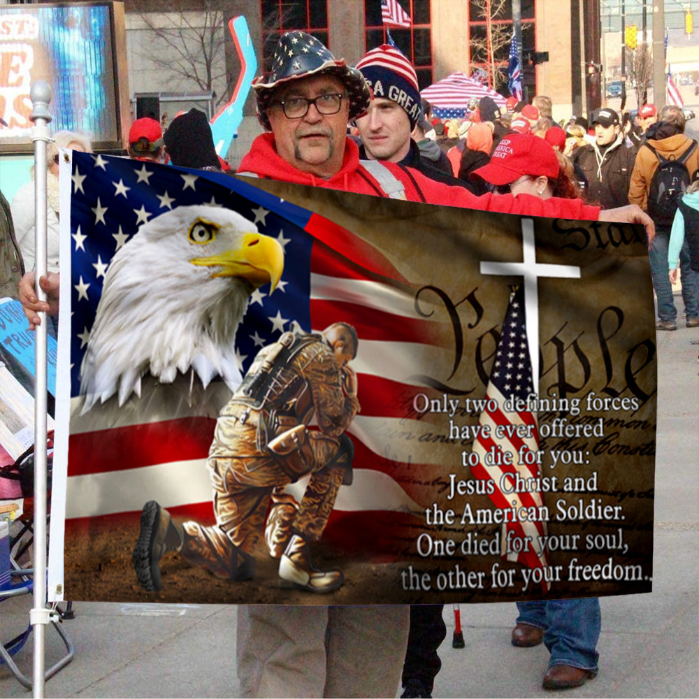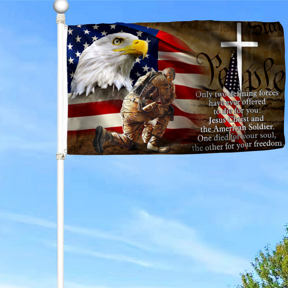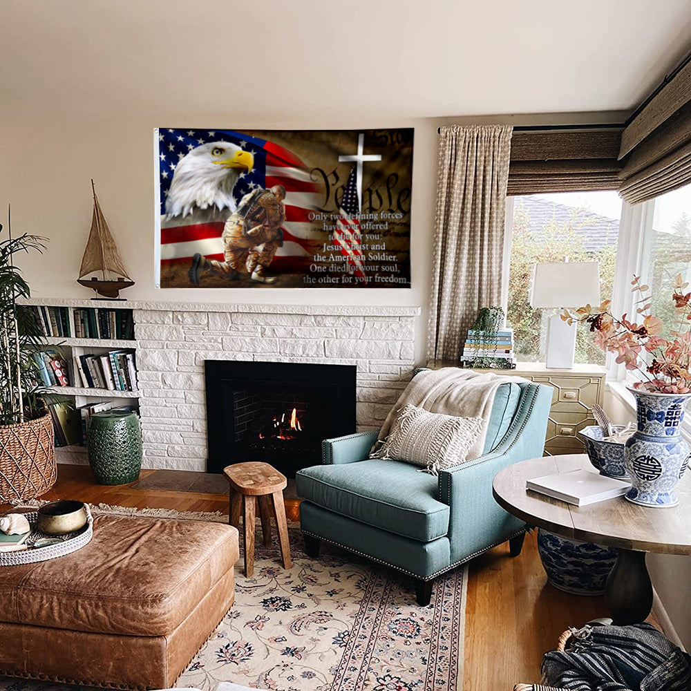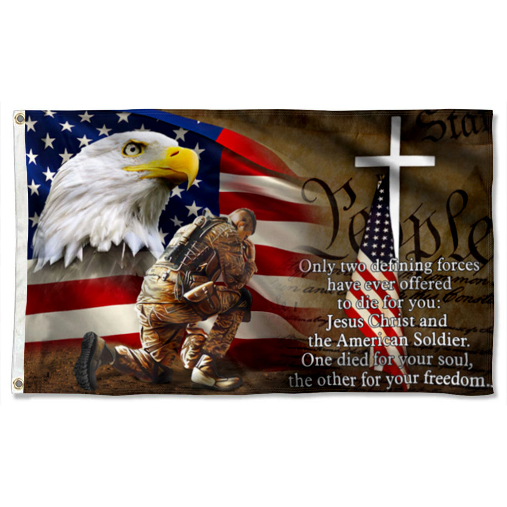 Fyon Owe To Jesus Christ And The American Soldier Veteran Christ Cross Flag Banner 41305 Indoor and outdoor banner