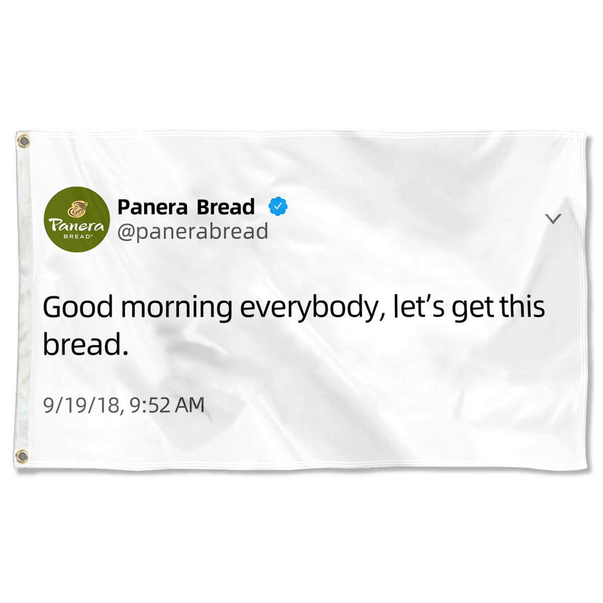 Fyon Panera Bread flag Good moring everybody let's get this bread Funny twitter Indoor and outdoor banner