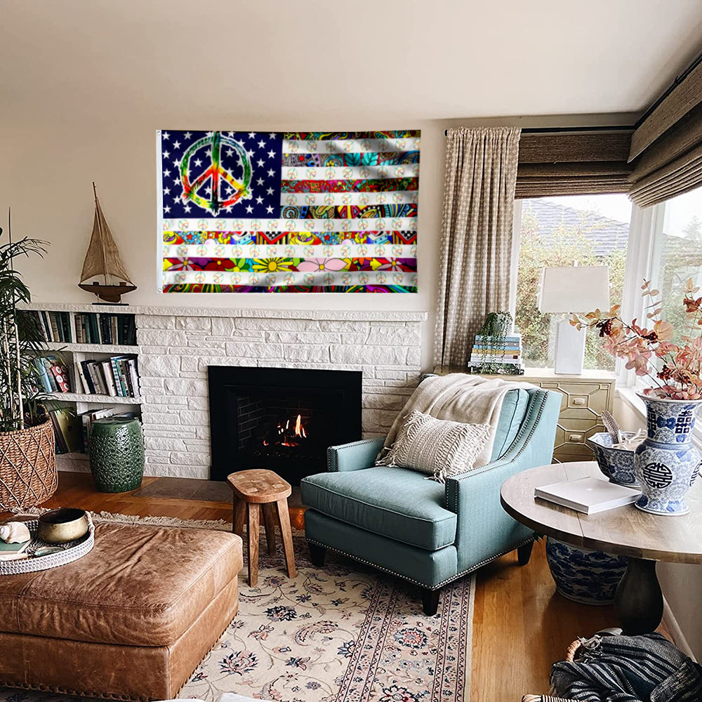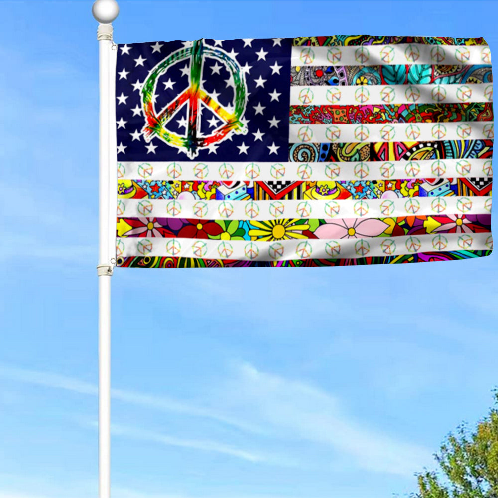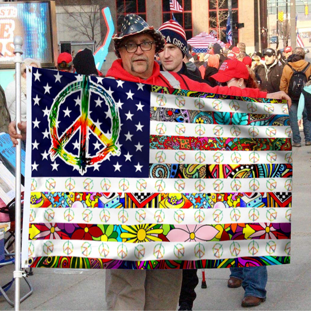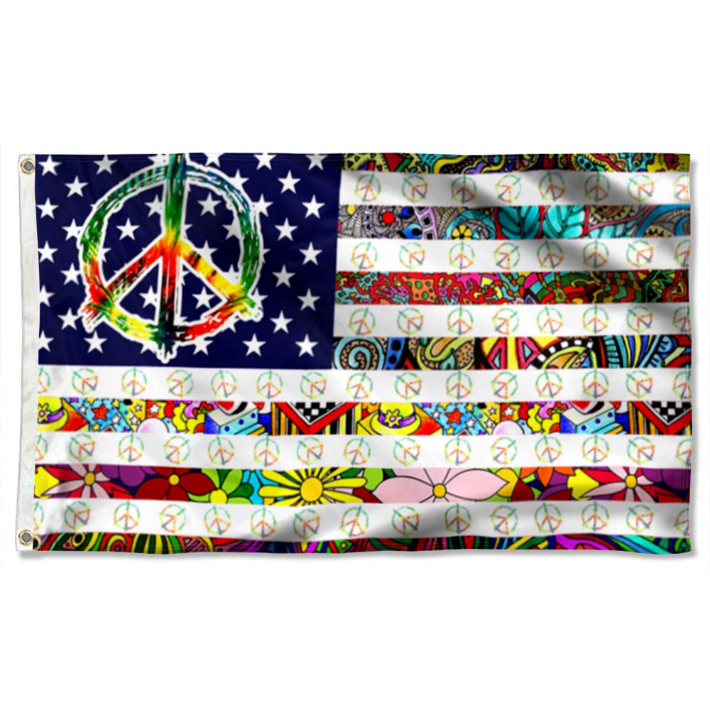 Fyon Peace Sign Hippie American Flag 41578 Indoor and Outdoor Banner