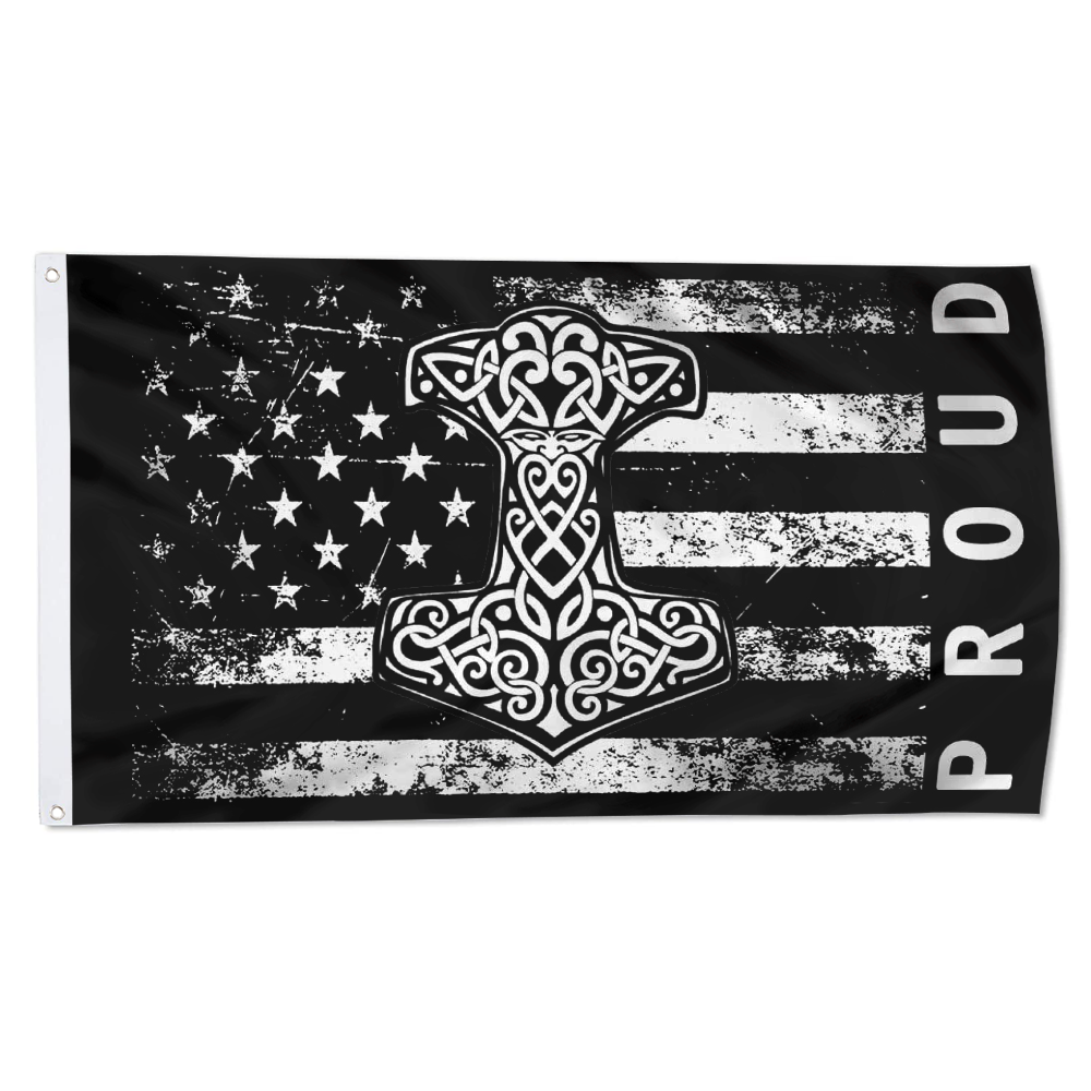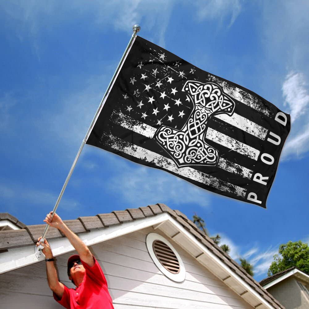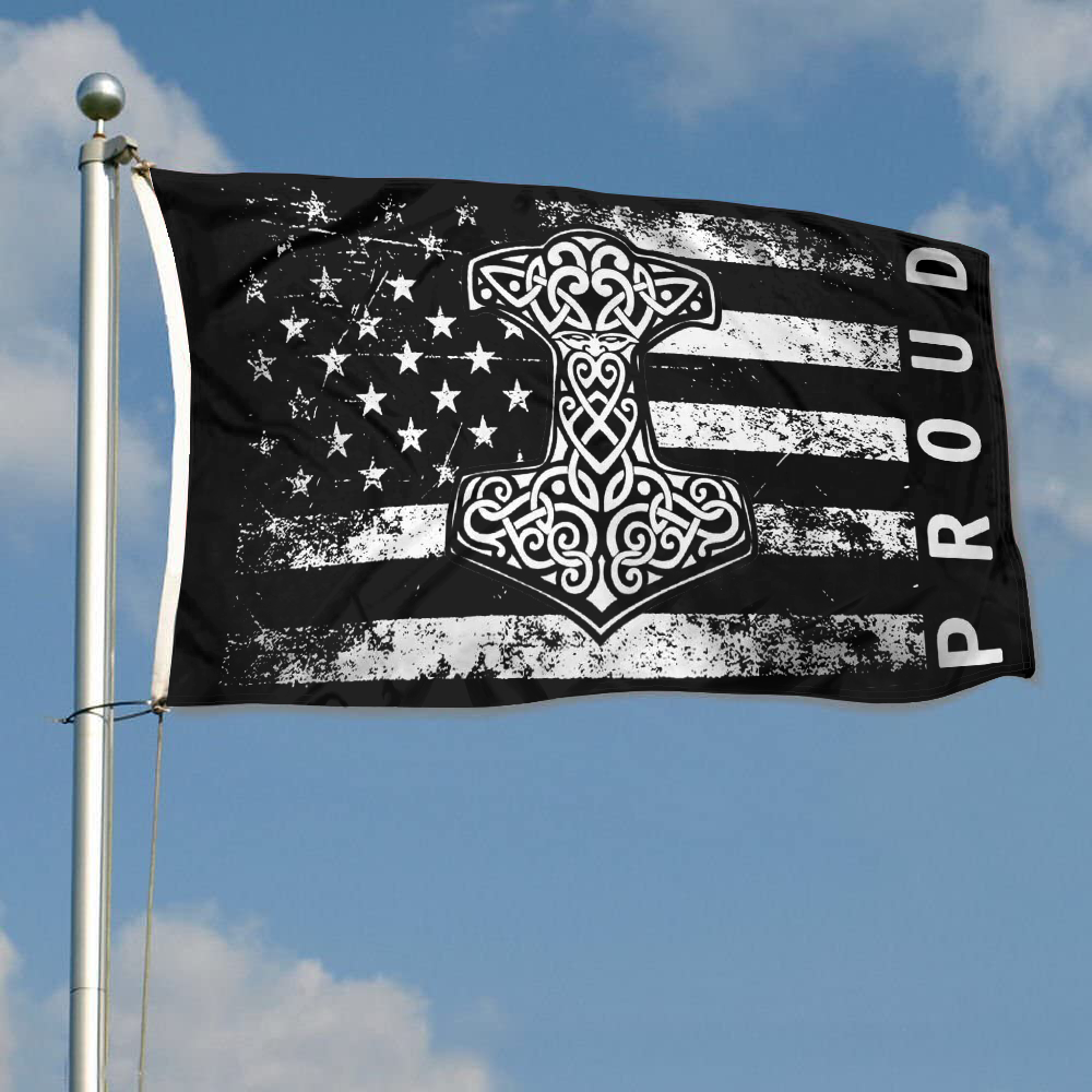 Fyon Proud American Flag with Thor's Hammer Viking Norse Flag Indoor and outdoor banner 2240810
