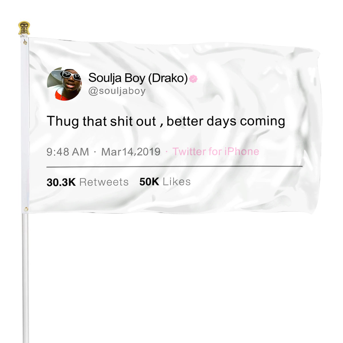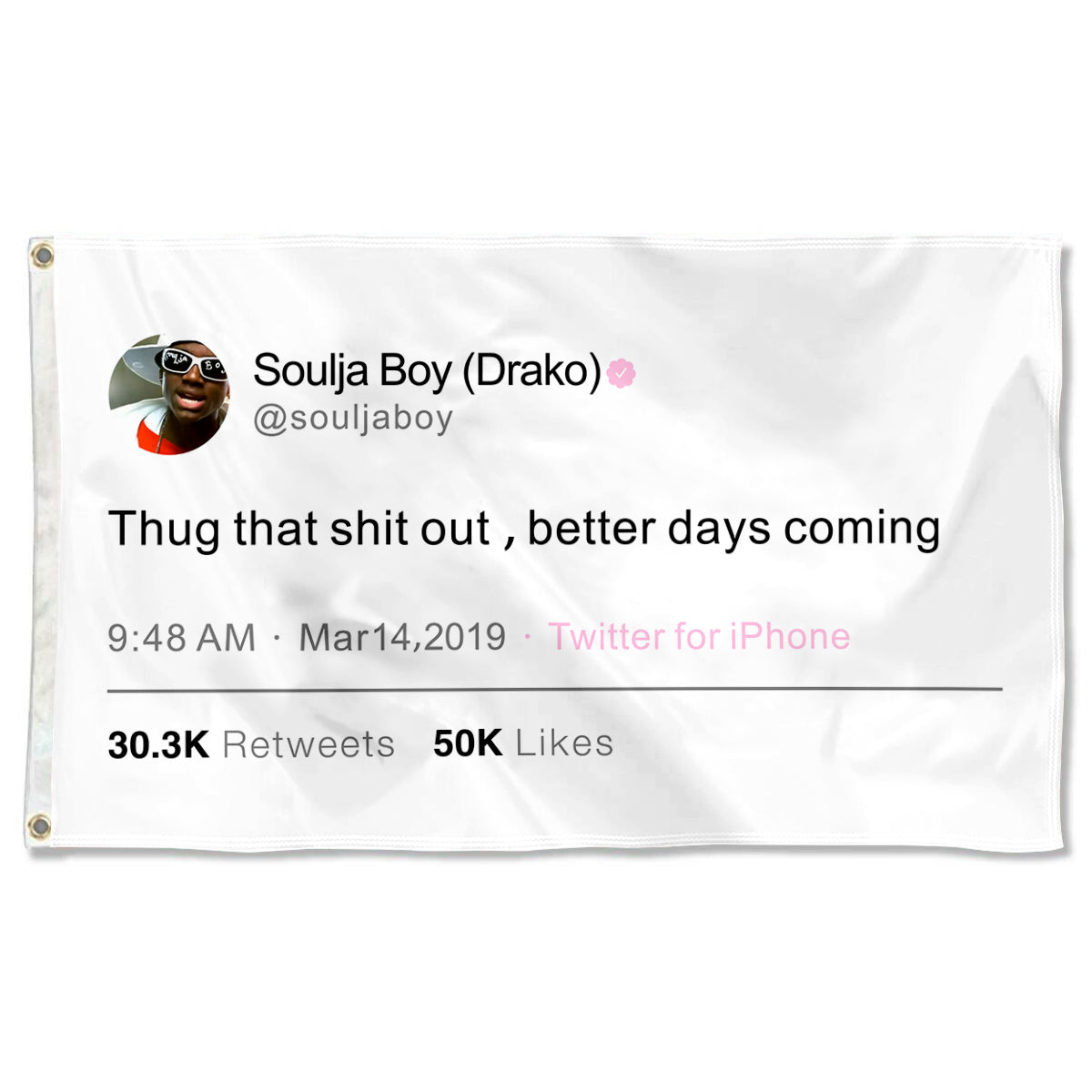 Fyon Soulja Boy Funny twitter flag Thug that shit out ,better days coming Flag Indoor and outdoor banner