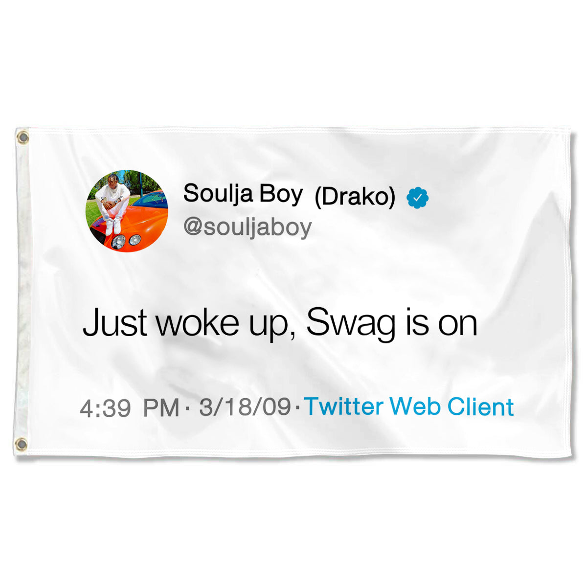 Fyon Soulja Boy flag Just woke up Swag is on Funny twitter Indoor and outdoor banner