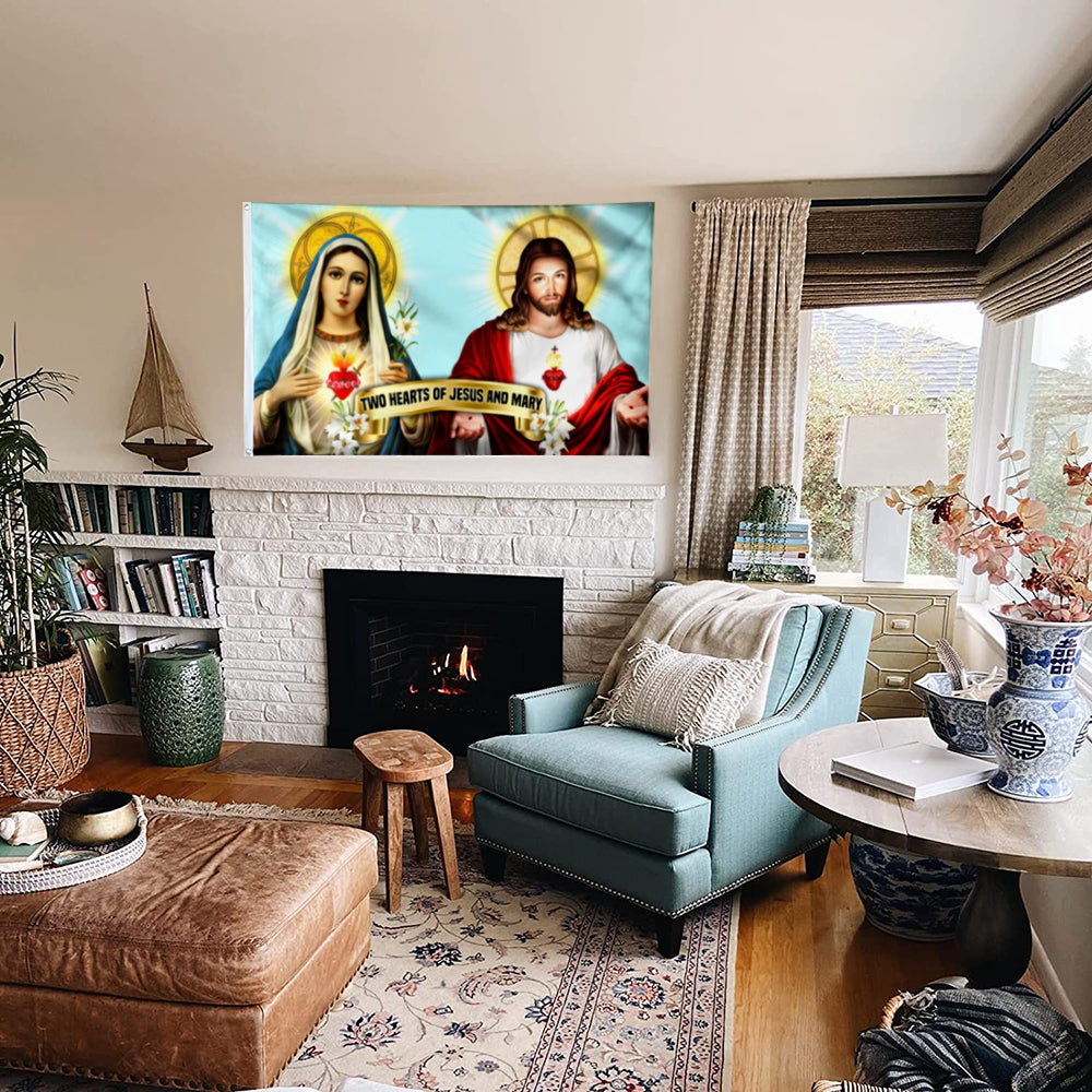 Fyon Two Hearts Of Jesus And Mary Flag 41316 Indoor and outdoor banner