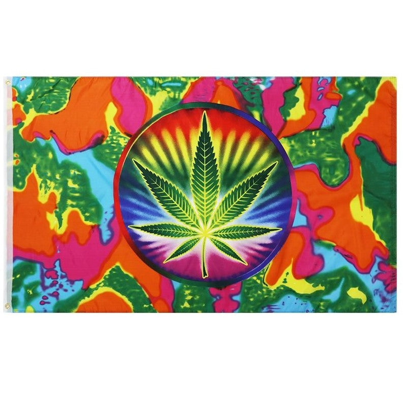 Fyon Tye Dye Rainbow Weed Leaf Peace Flag Indoor and outdoor banner