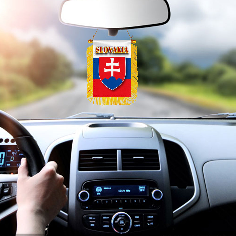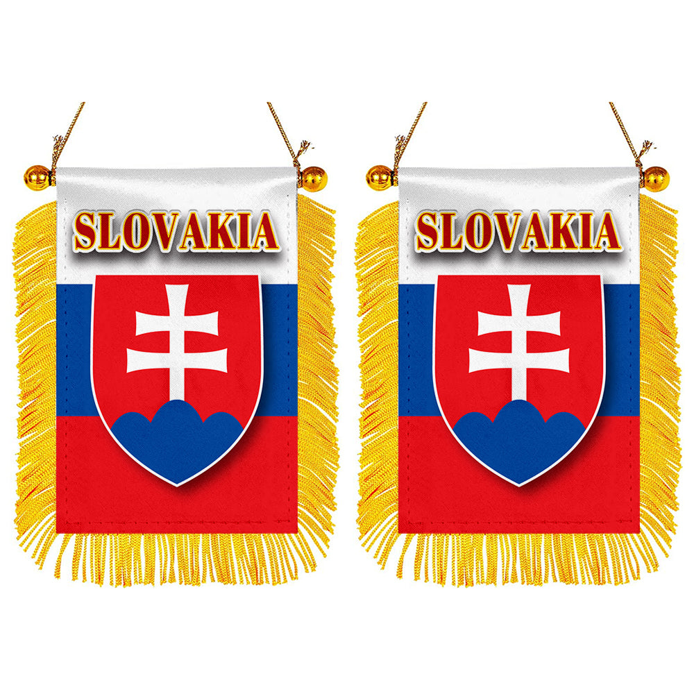 Slovakia Flag Mini Car Rearview Mirror Flag Banner - 2PC