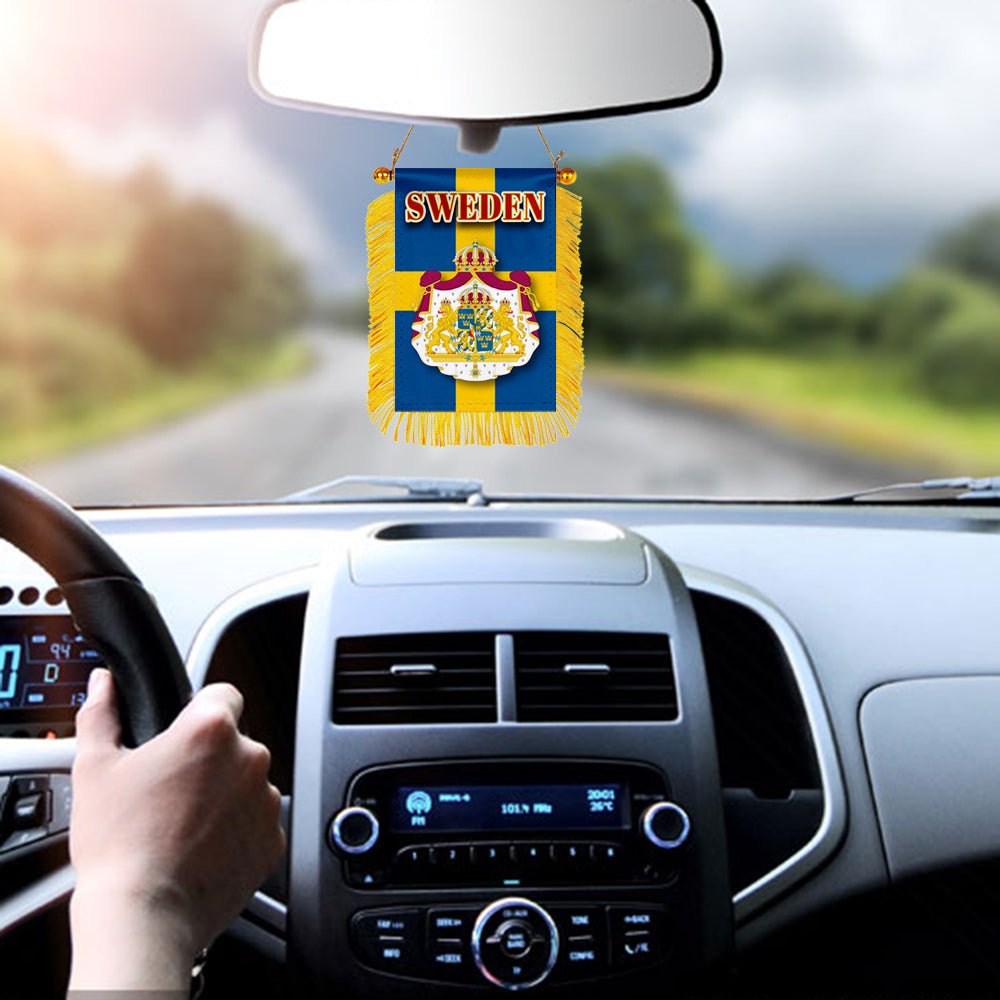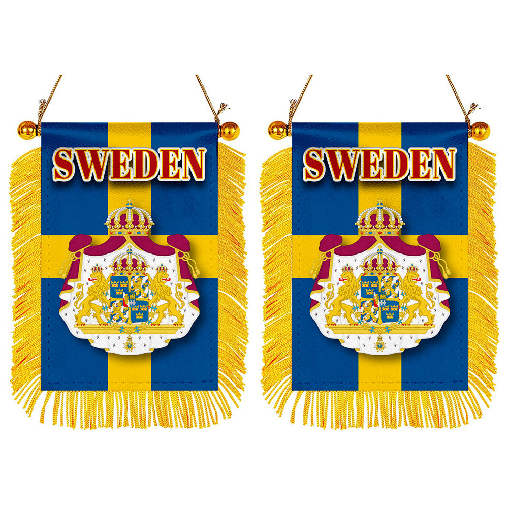 Sweden Flag Mini Car Rearview Mirror Flag Banner - 2PC