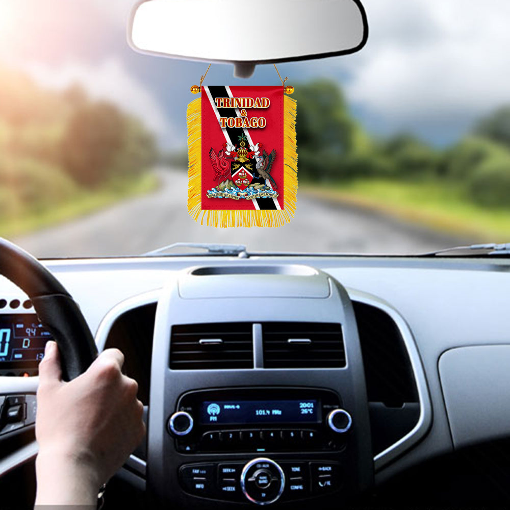Trinidad and Tobago Flag Mini Car Rearview Mirror Flag Banner - 2PC