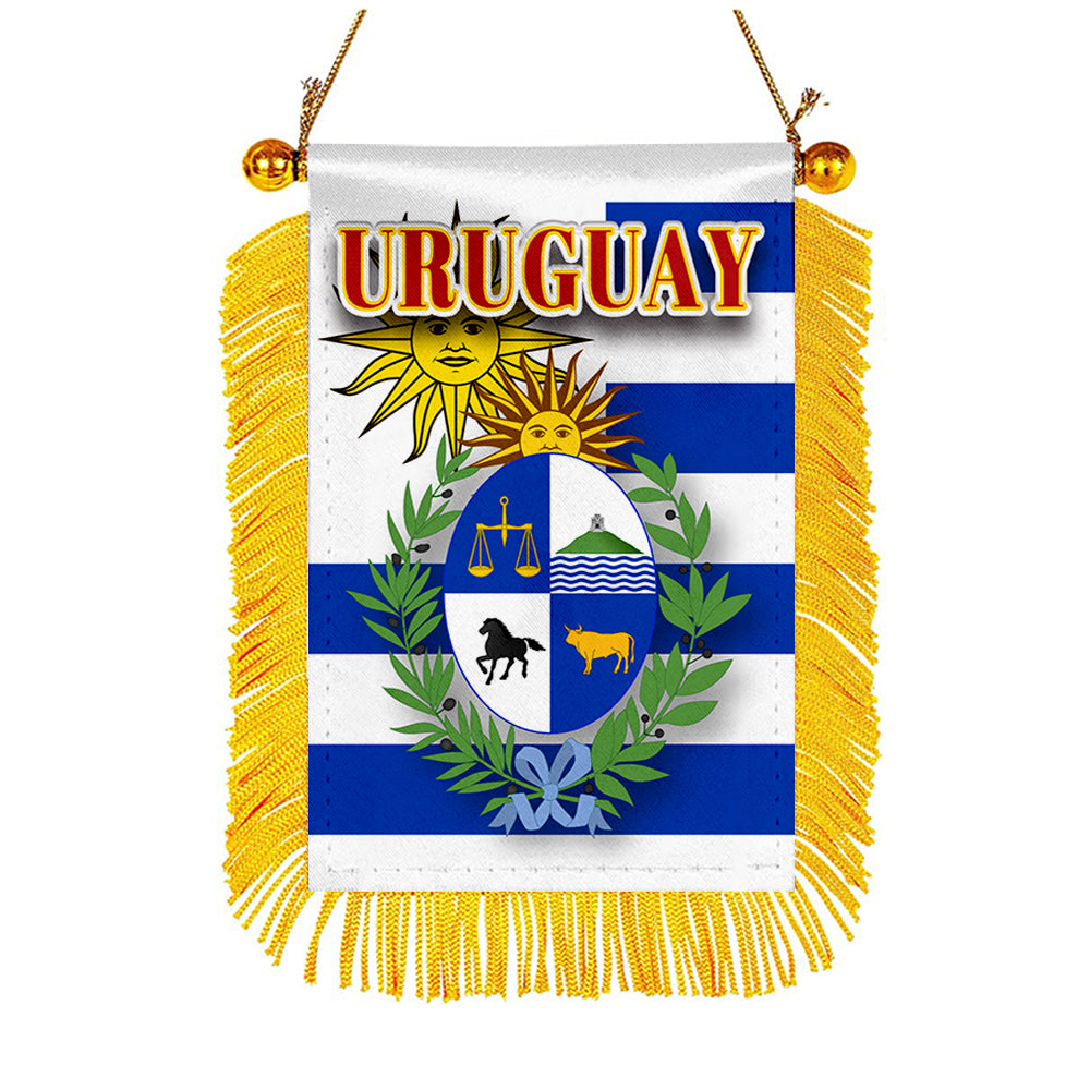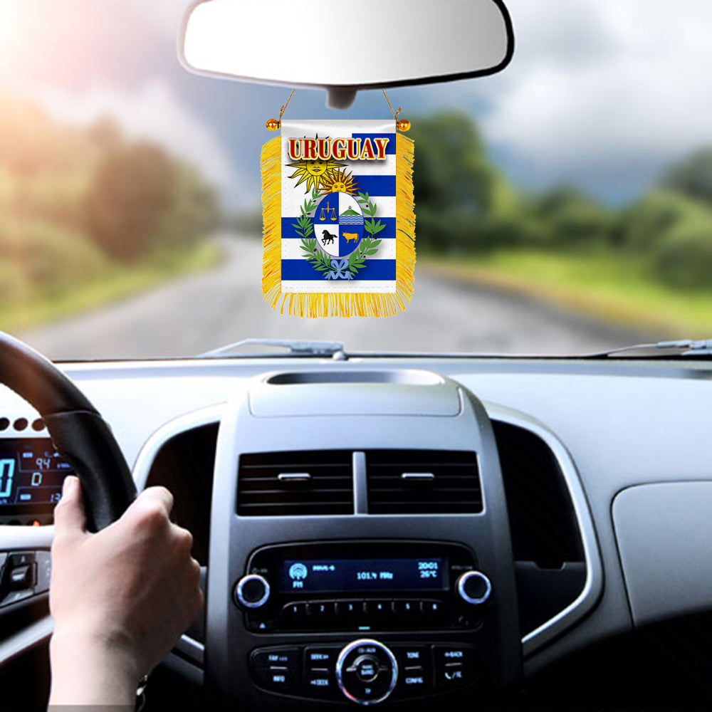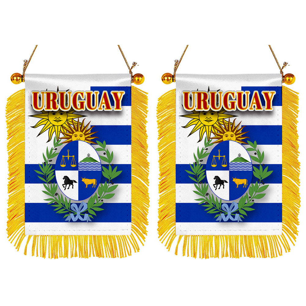 Uruguay Flag Mini Car Rearview Mirror Flag Banner - 2PC