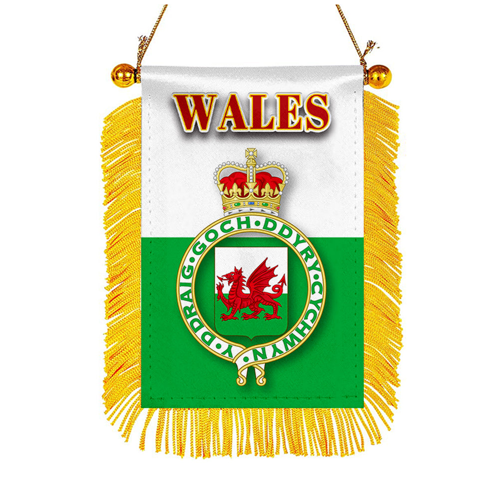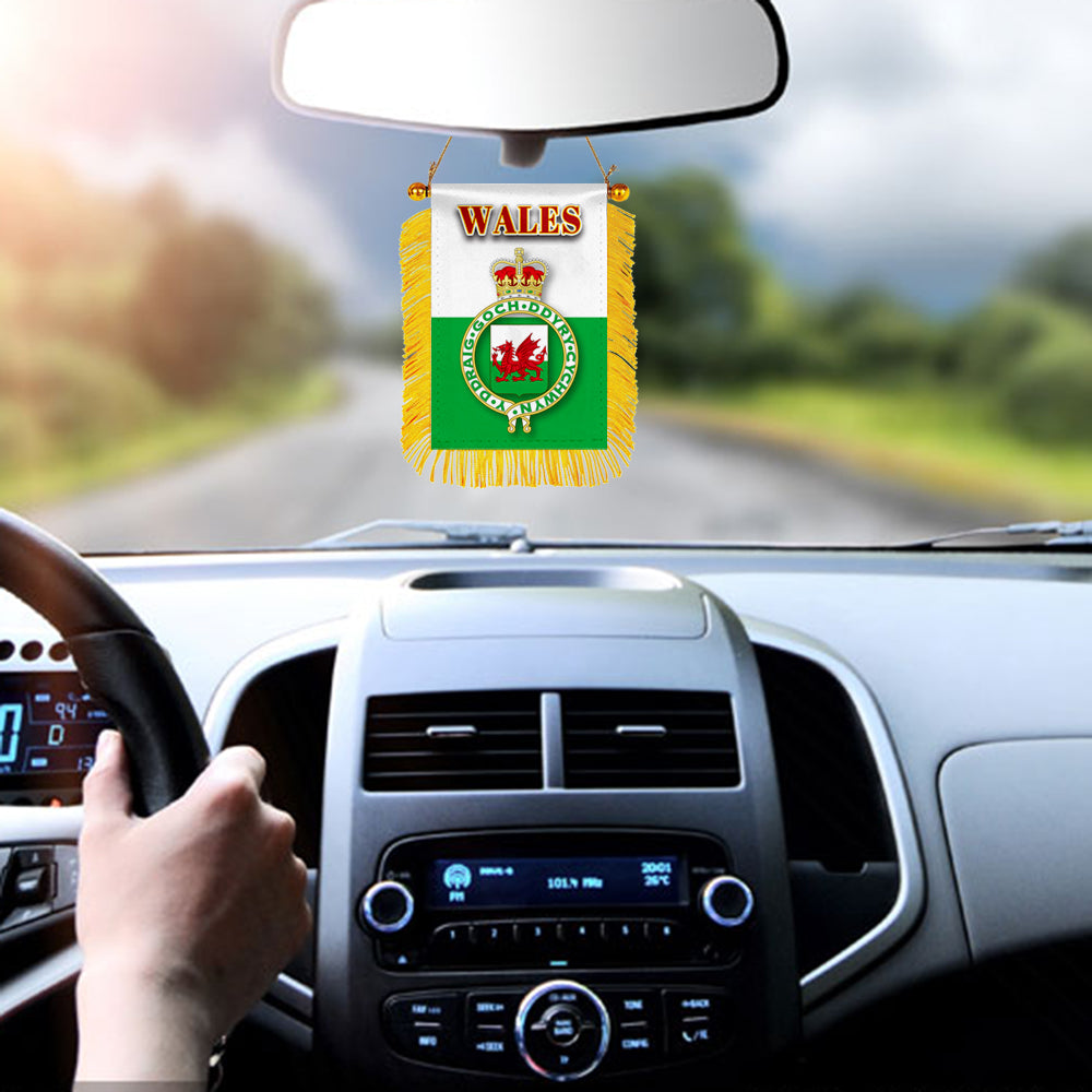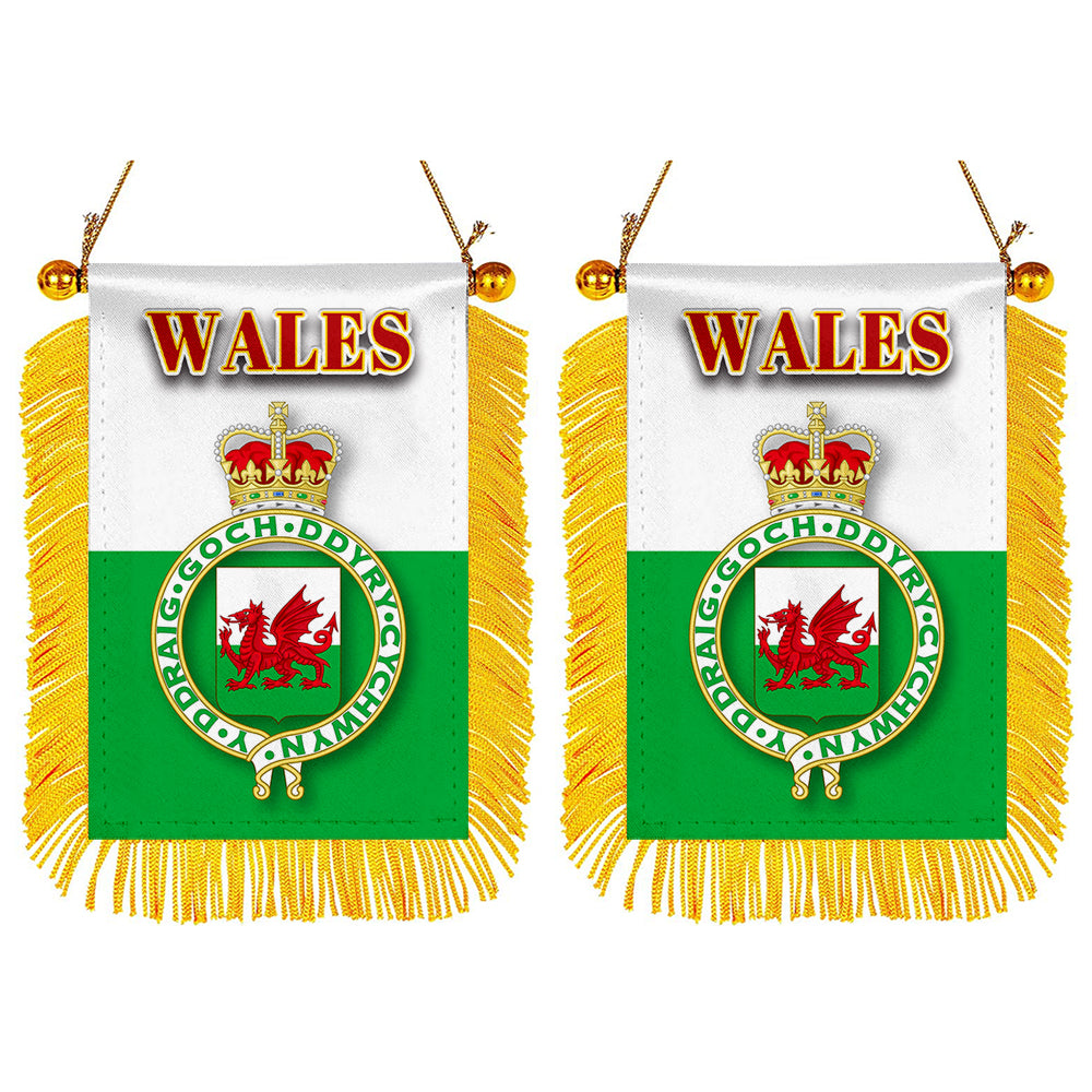 Wales Flag Mini Car Rearview Mirror Flag Banner - 2PC